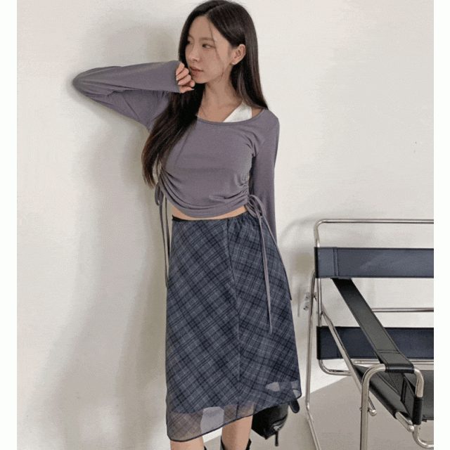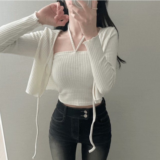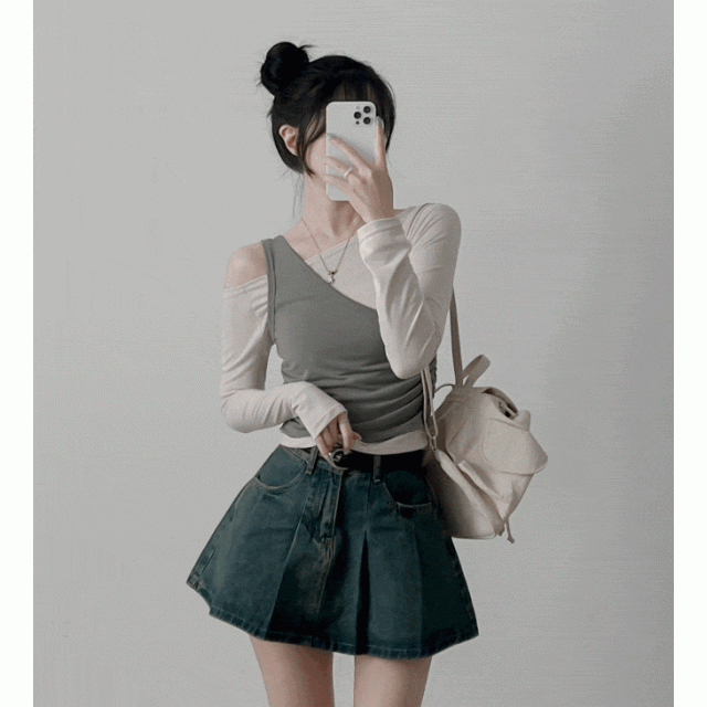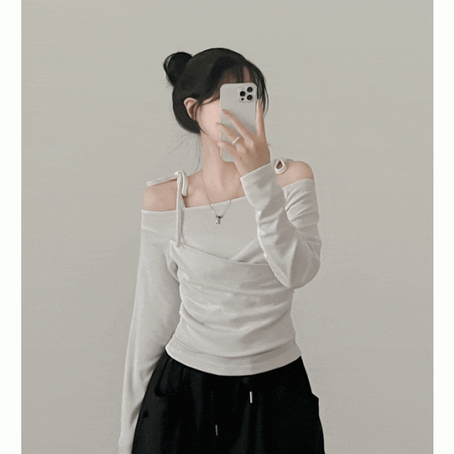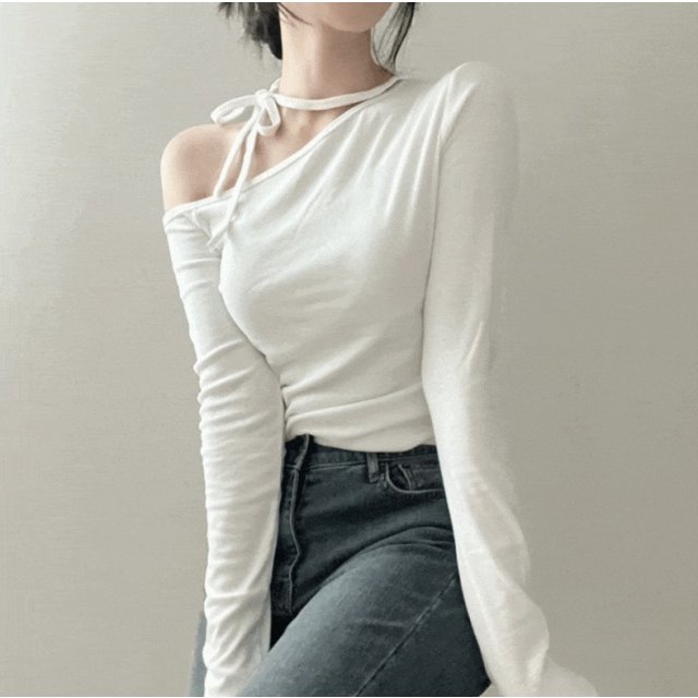 露肩綁帶交衩設計長袖【4色入】 Copy