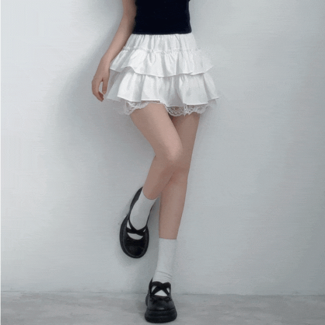 雙層蕾絲荷葉邊半身裙【2色入】 Copy