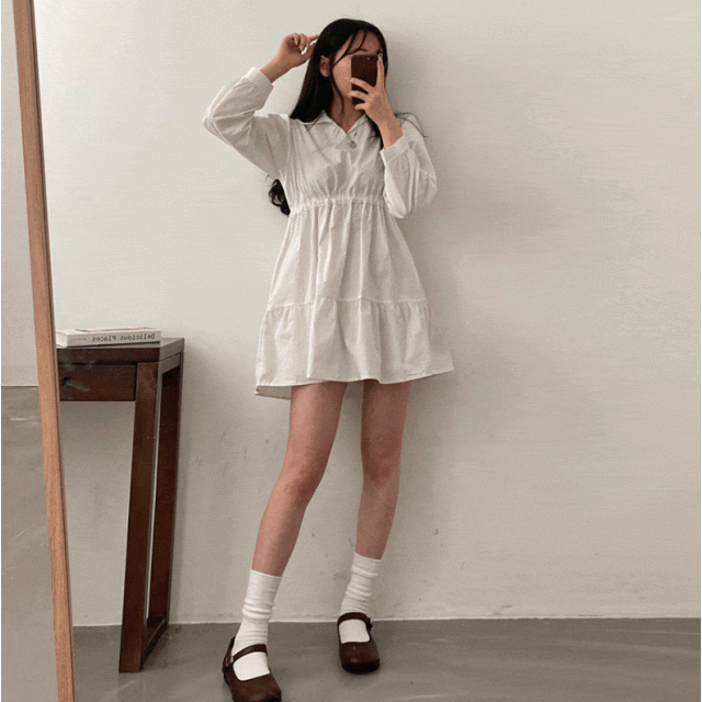 透薄長袖平領連身裙 - 現貨