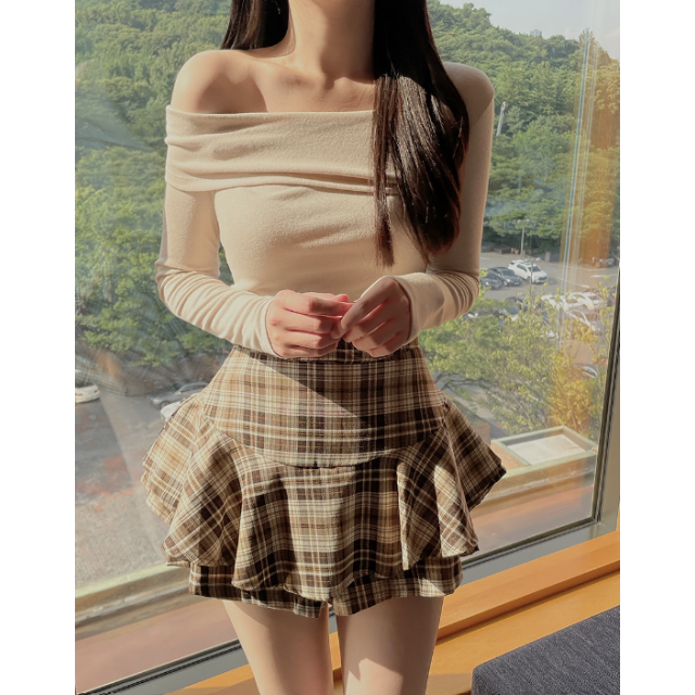 格紋兩色短裙 - 現貨