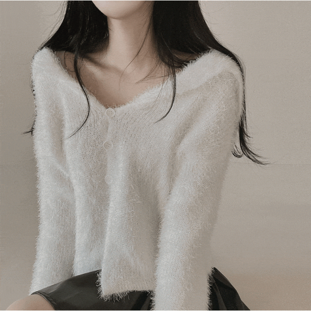 毛毛領直紋針織兩件套 - 現貨