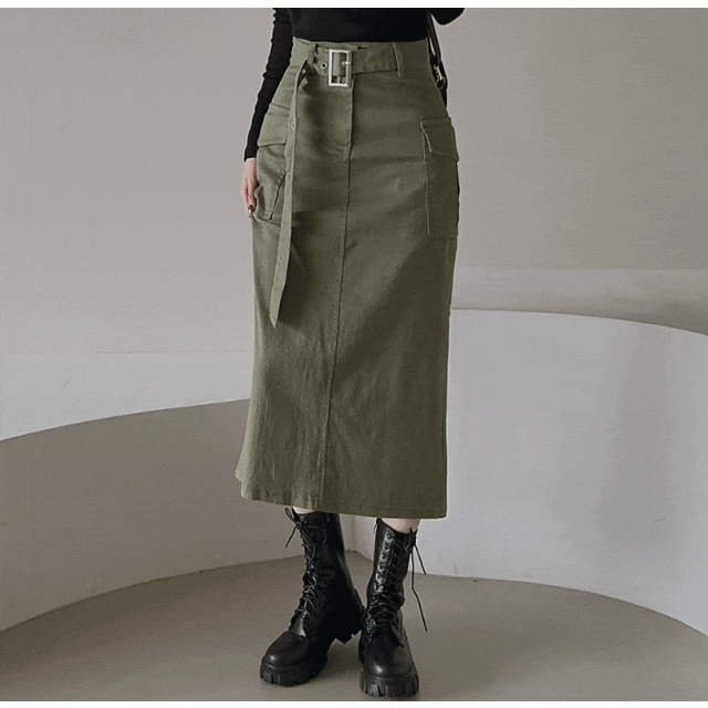 雙口袋工裝半長裙 - 現貨