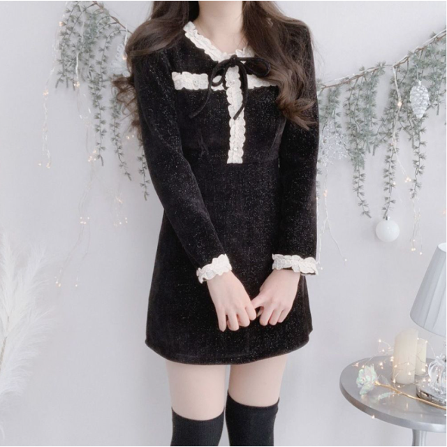 圓領蕾絲邊連身裙 - 現貨