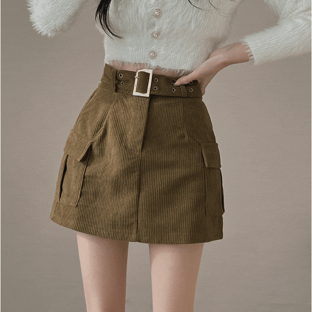 燈芯絨粗腰帶工裝裙 -現貨