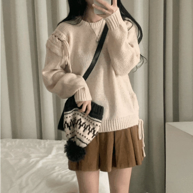 側袖綁帶針織上衣 - 現貨