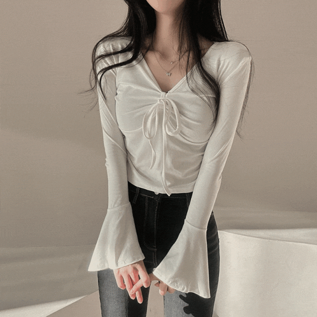 喇叭袖綁帶上衣 - 現貨