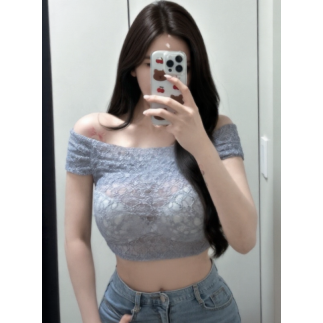 一字肩蕾絲上衣【4色入】