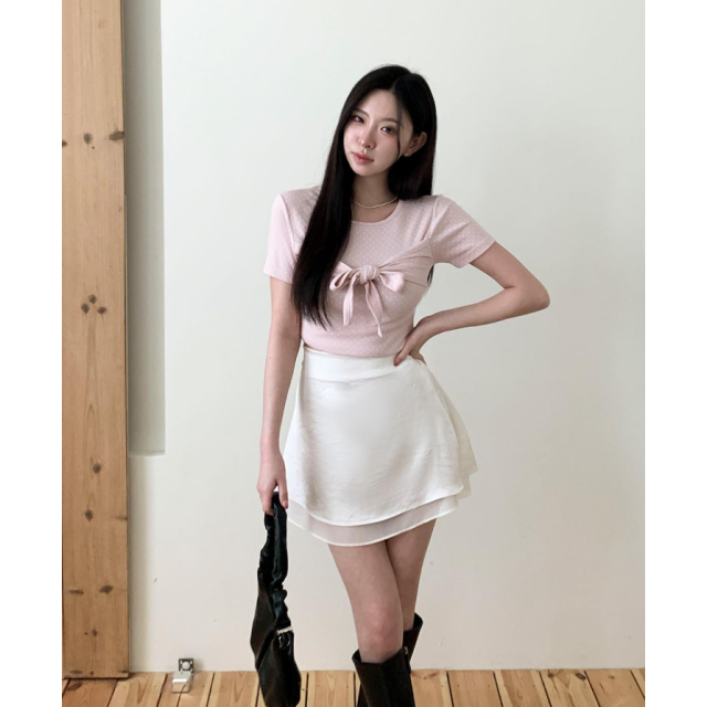 綁帶橡筋腰短裙【2色入】