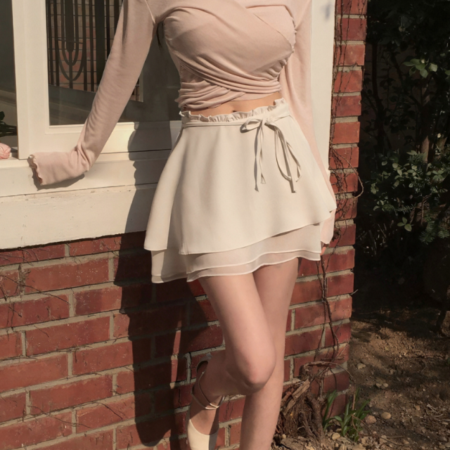 多層荷葉邊雪紡綁帶半身裙【3色入】
