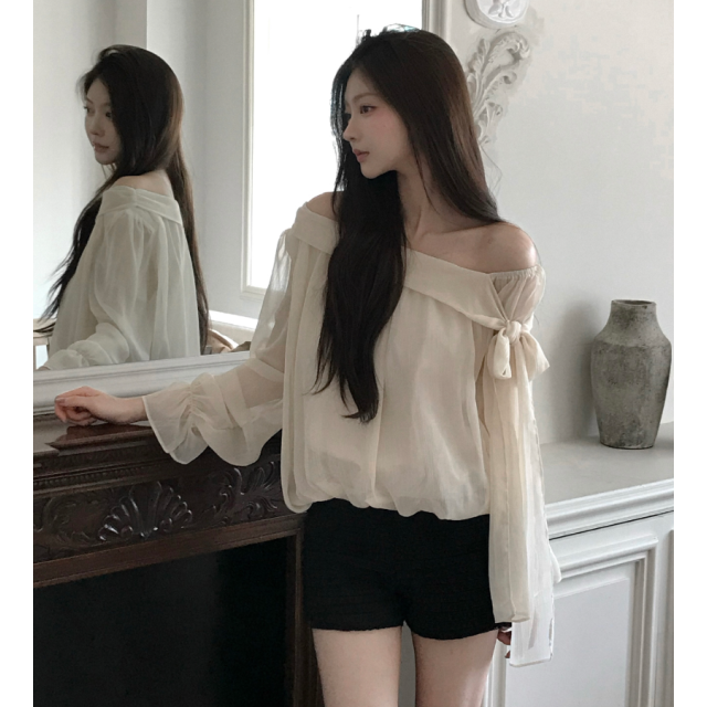 雪紡綁帶不對稱襯衫【2色入】
