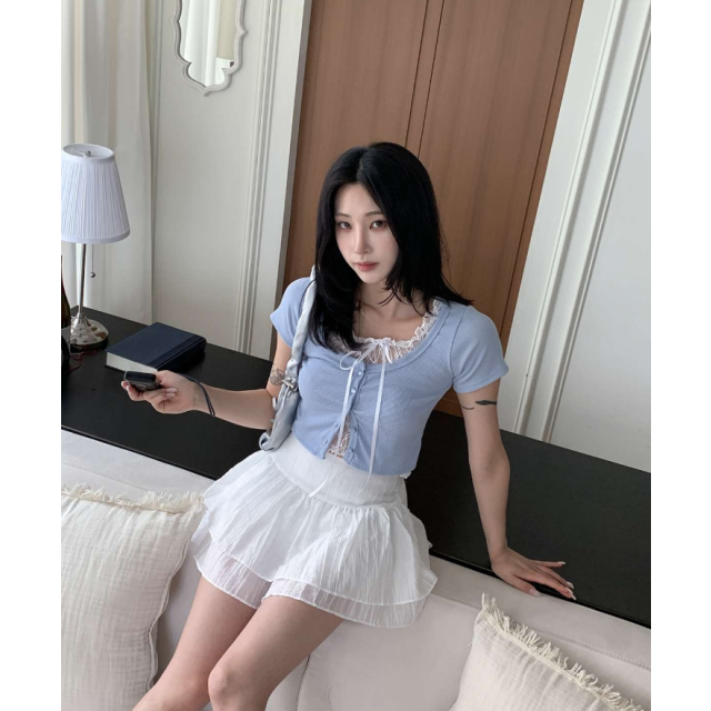 蕾絲假兩件短袖T恤【4色入】