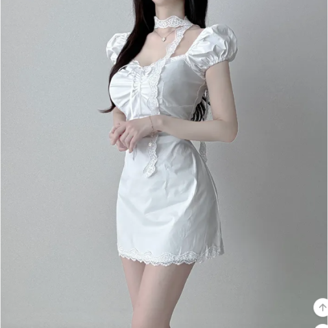 泡泡袖修身蕾絲連身裙【2色入】