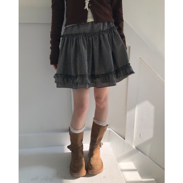 雙層荷葉邊格紋半身裙【3色入】