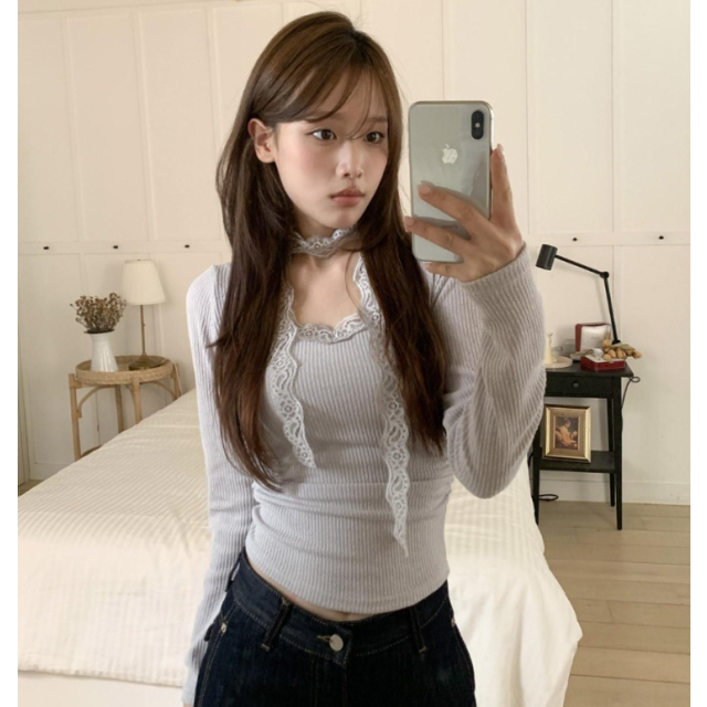 兩件套蕾絲T恤【2色入】