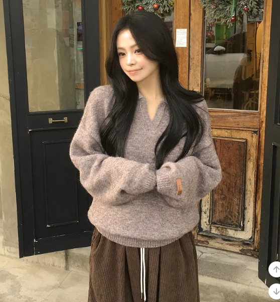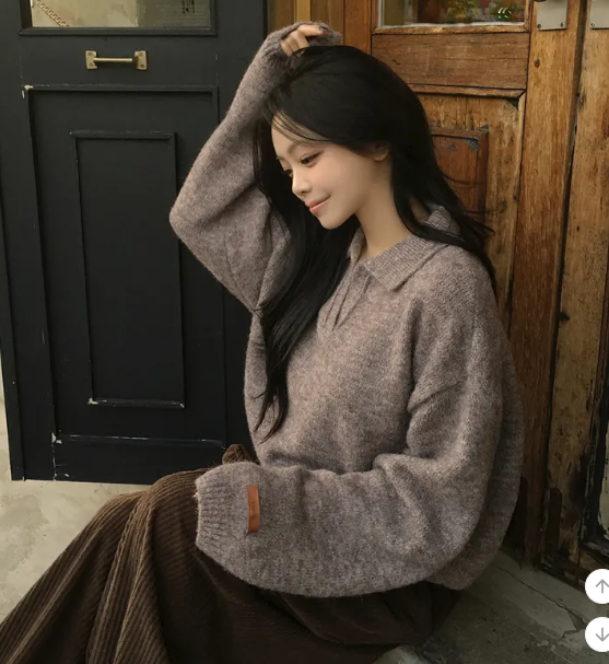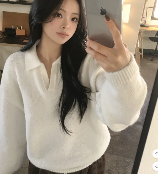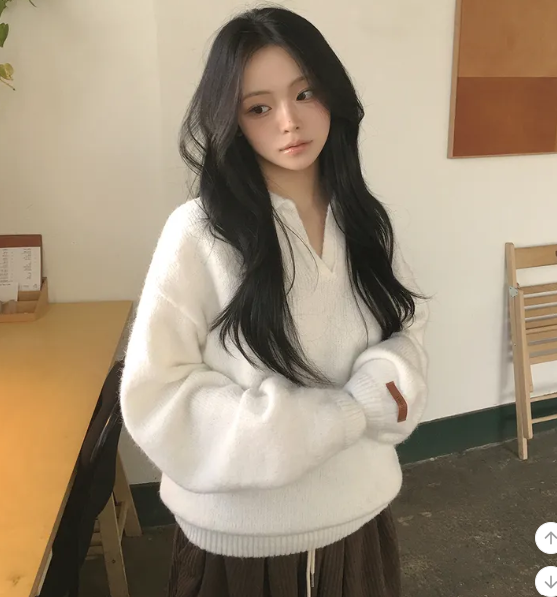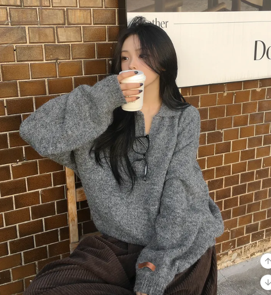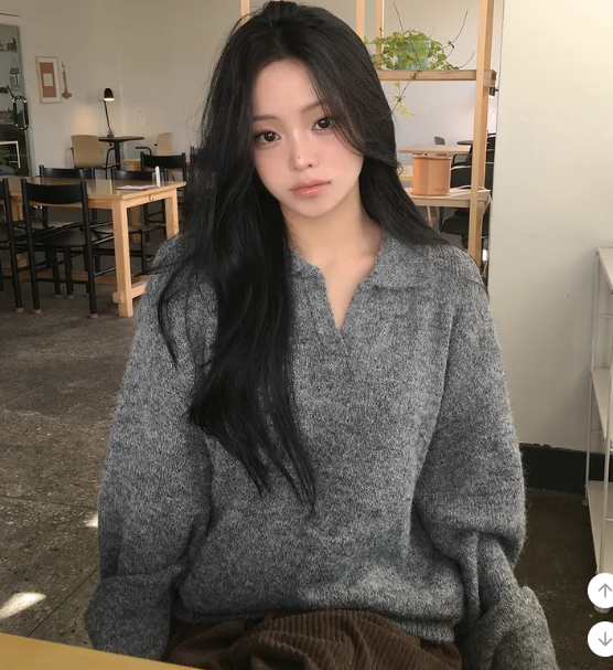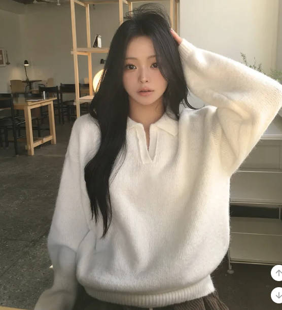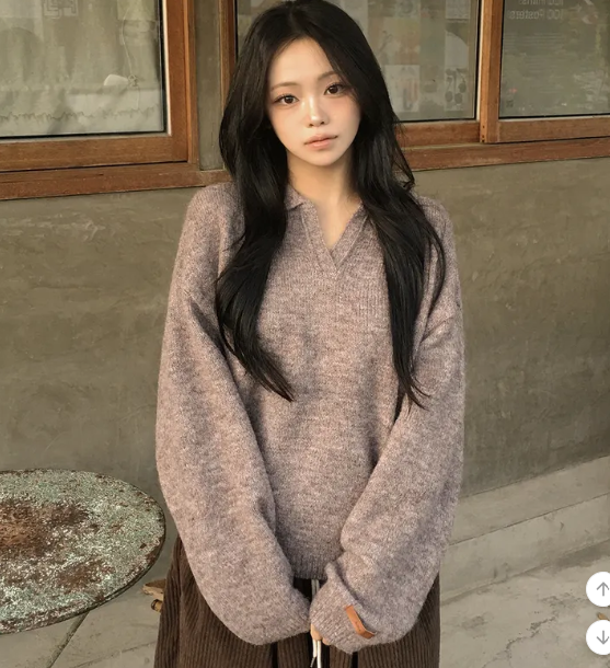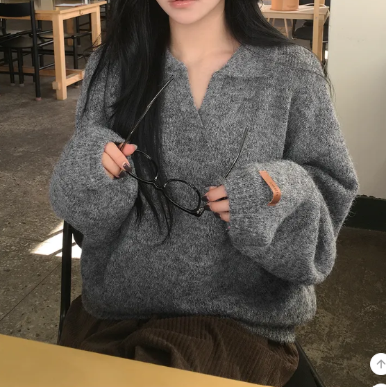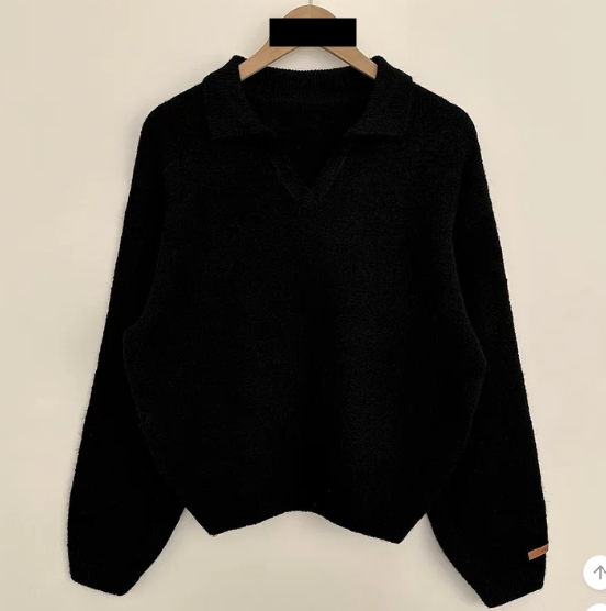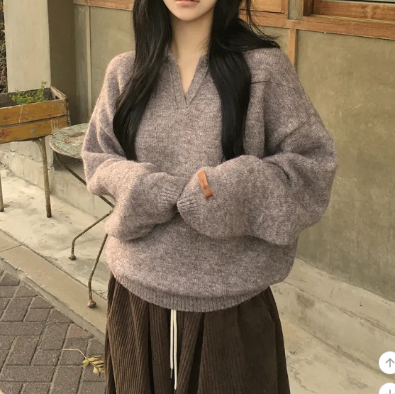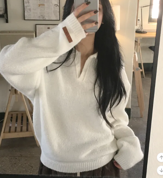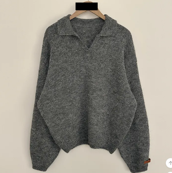 (•‾⌣‾•)開領針織長袖上衣💕日常寬鬆版型點襯都無問題❤️