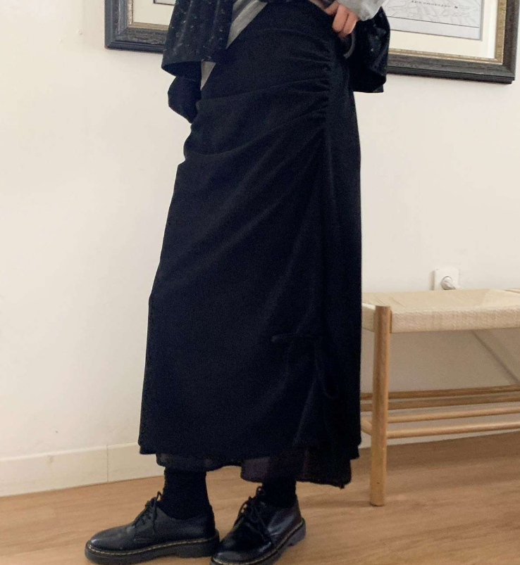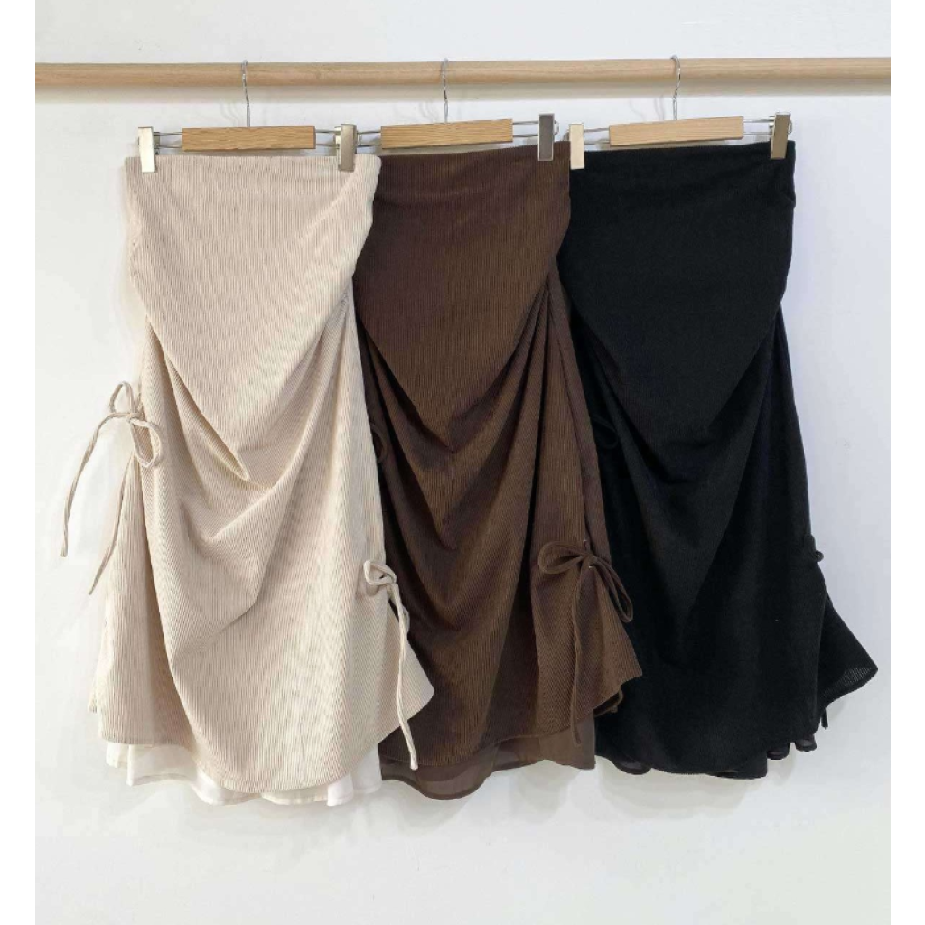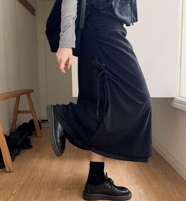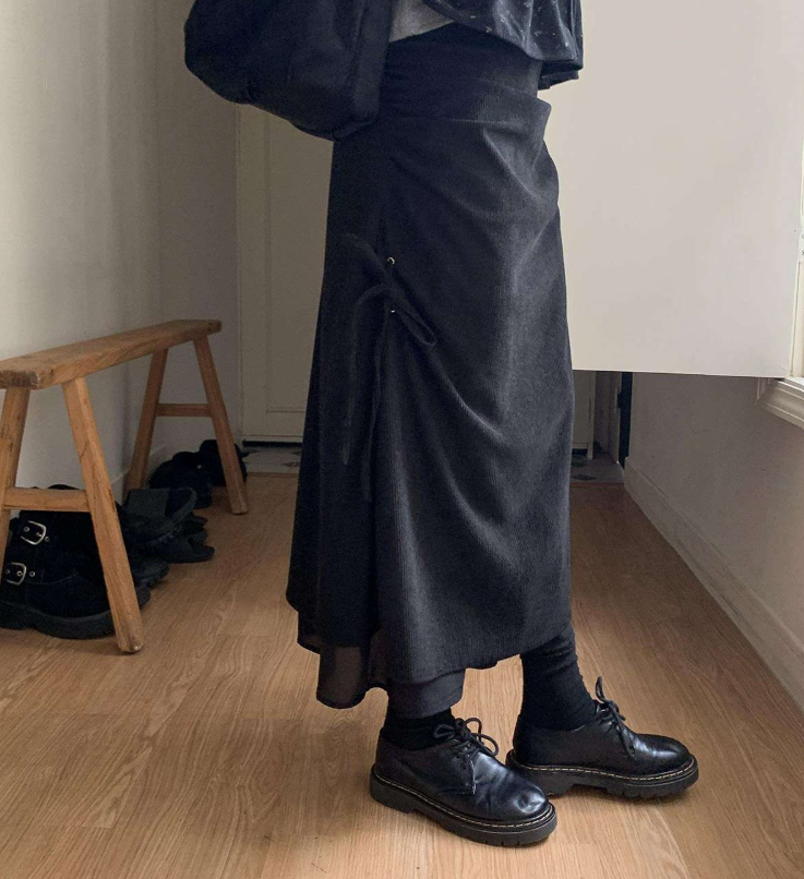 (•‾⌣‾•)燈芯絨不規則長裙💕好有日系穿搭感覺❤️