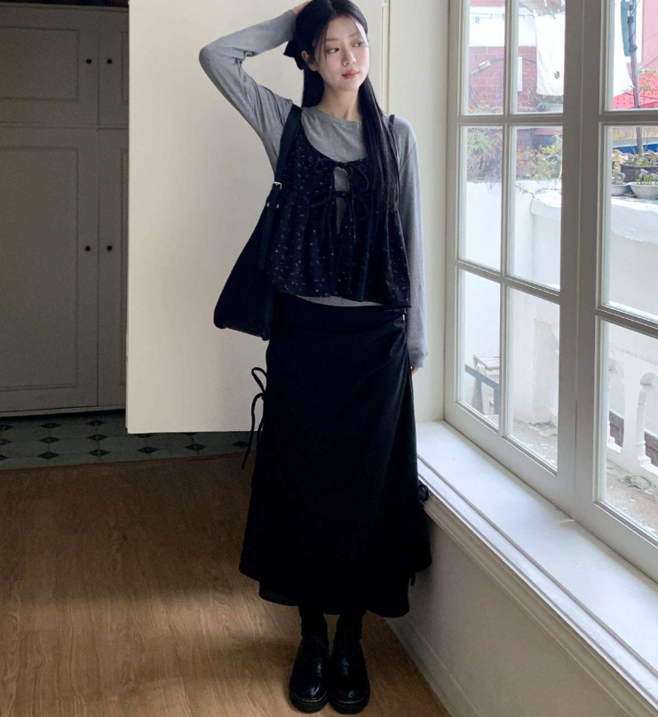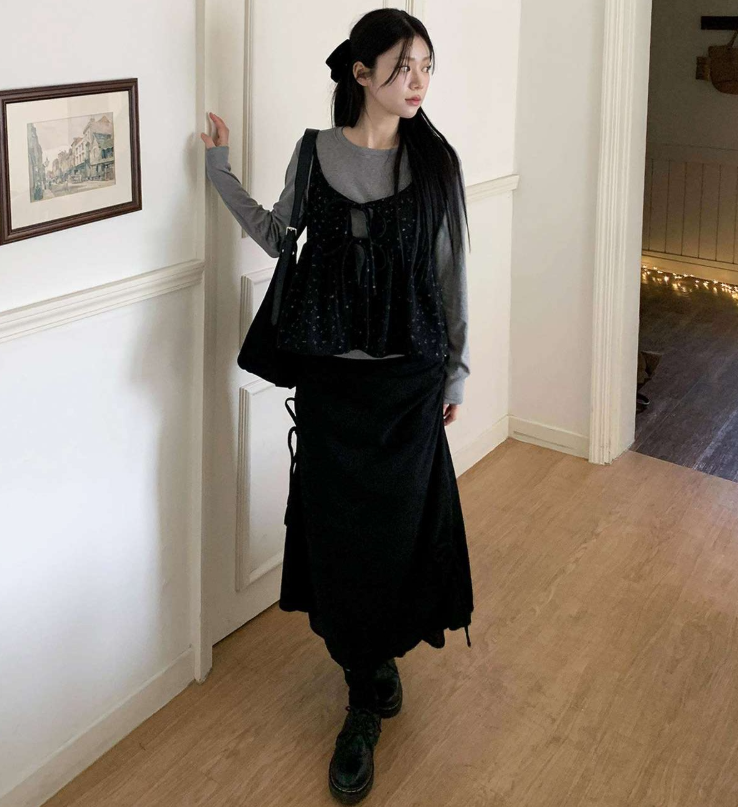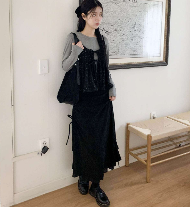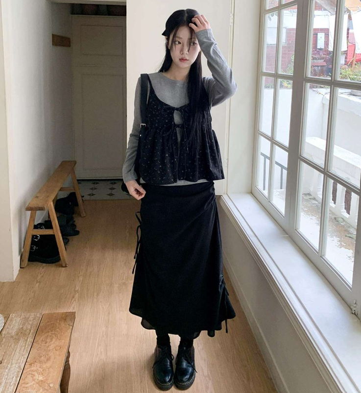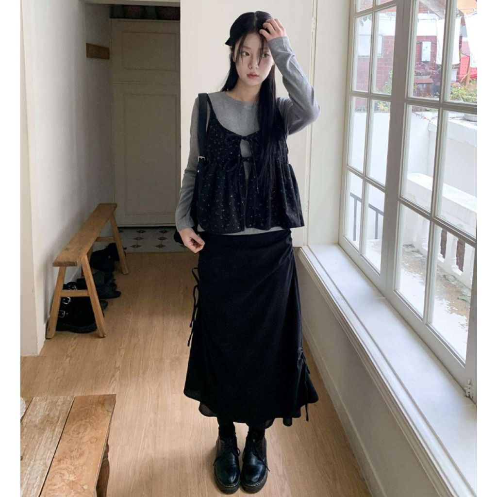 (•‾⌣‾•)燈芯絨不規則長裙💕好有日系穿搭感覺❤️