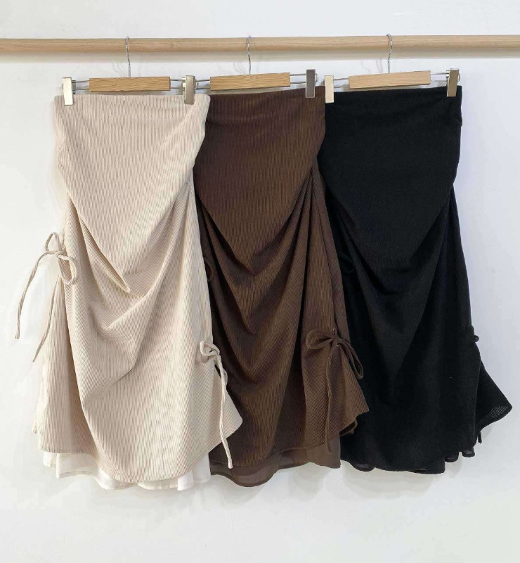 燈芯絨不規則長裙【3色入】