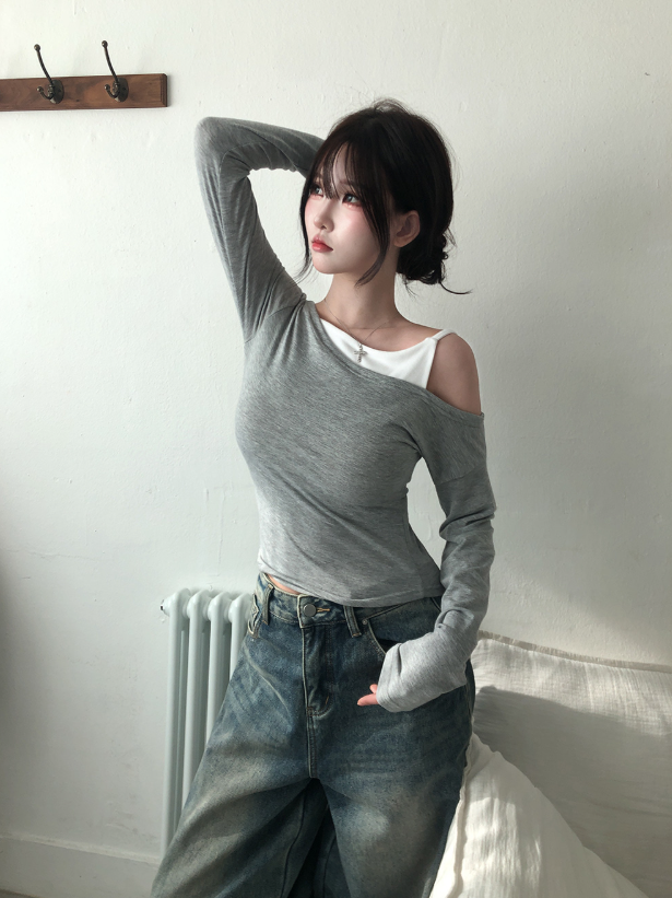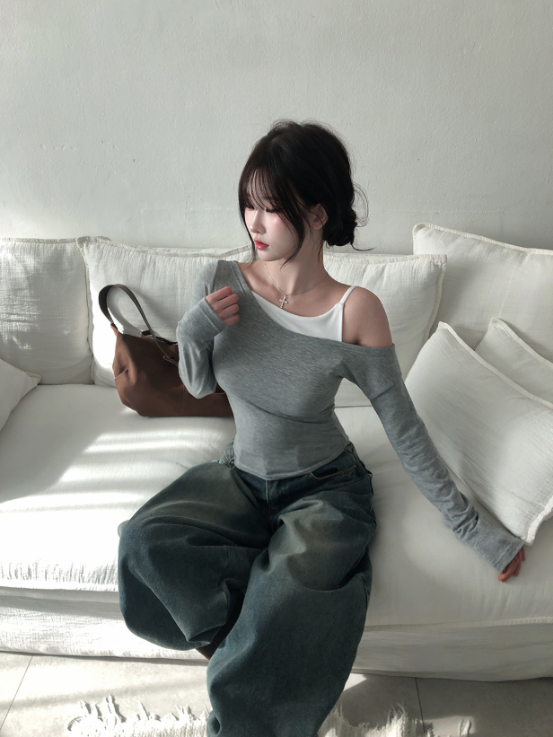 (•‾⌣‾•)單吊帶拼接T恤💕日常出街唔會太單調而且好襯衫❤️