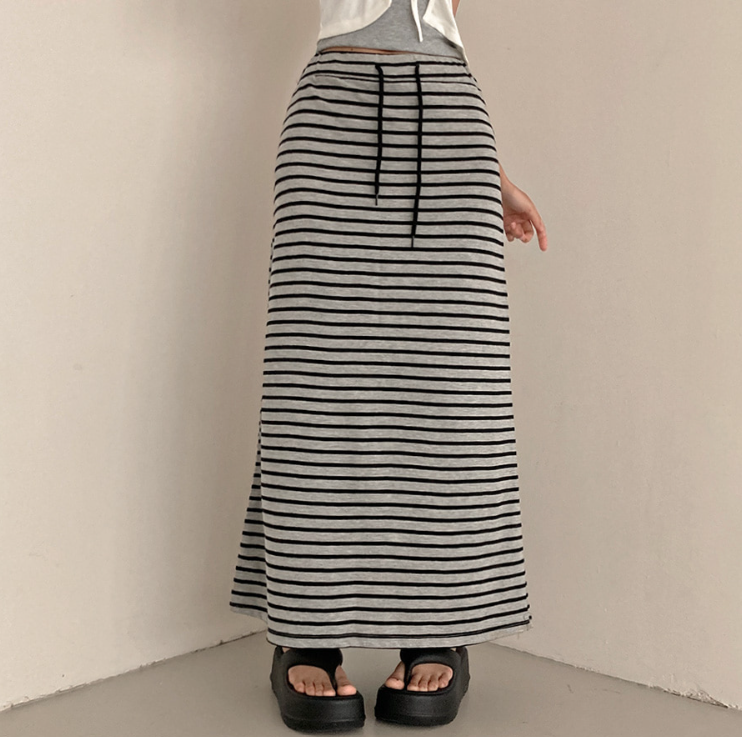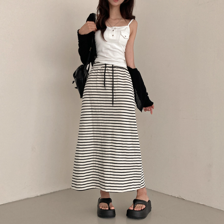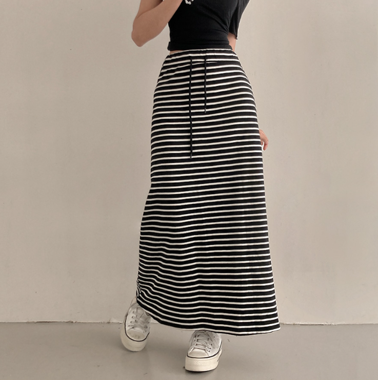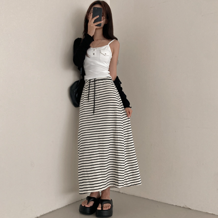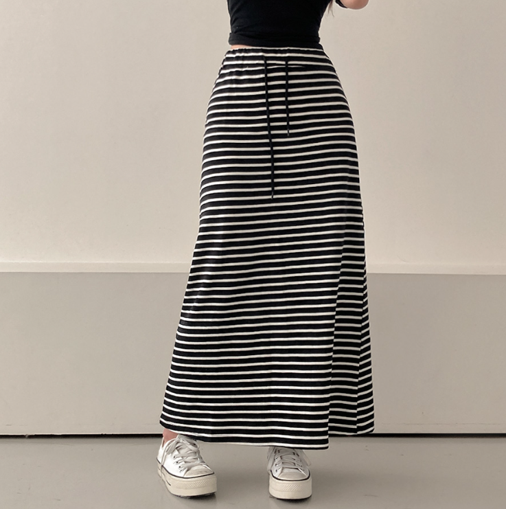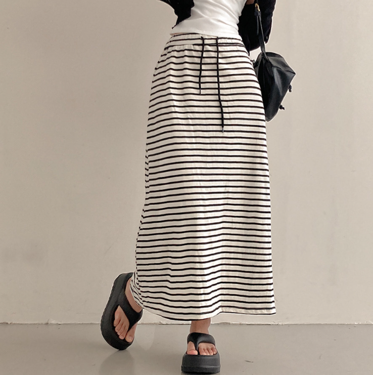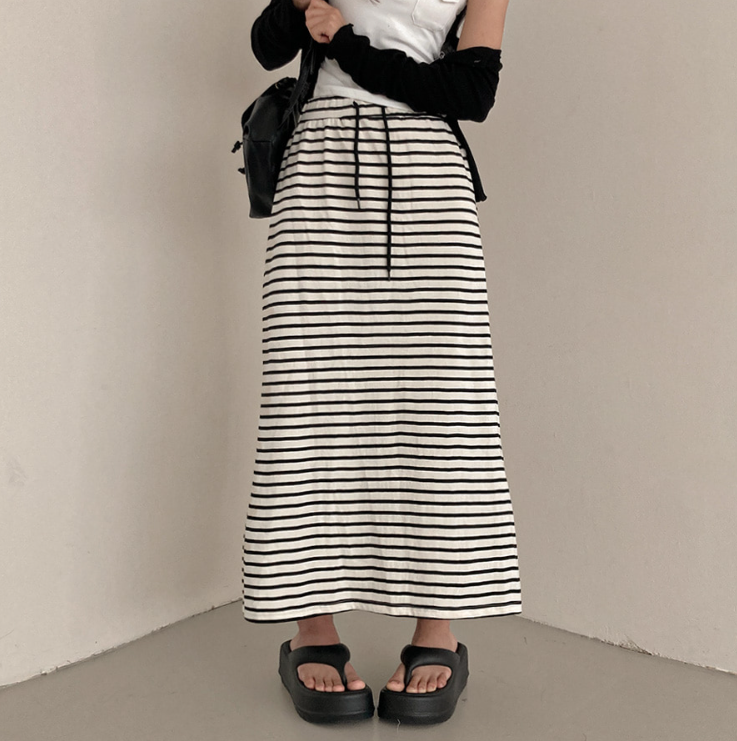 (•‾⌣‾•)橡筋腰條紋長裙💕可以遮蓋下身缺點拉高身形❤️