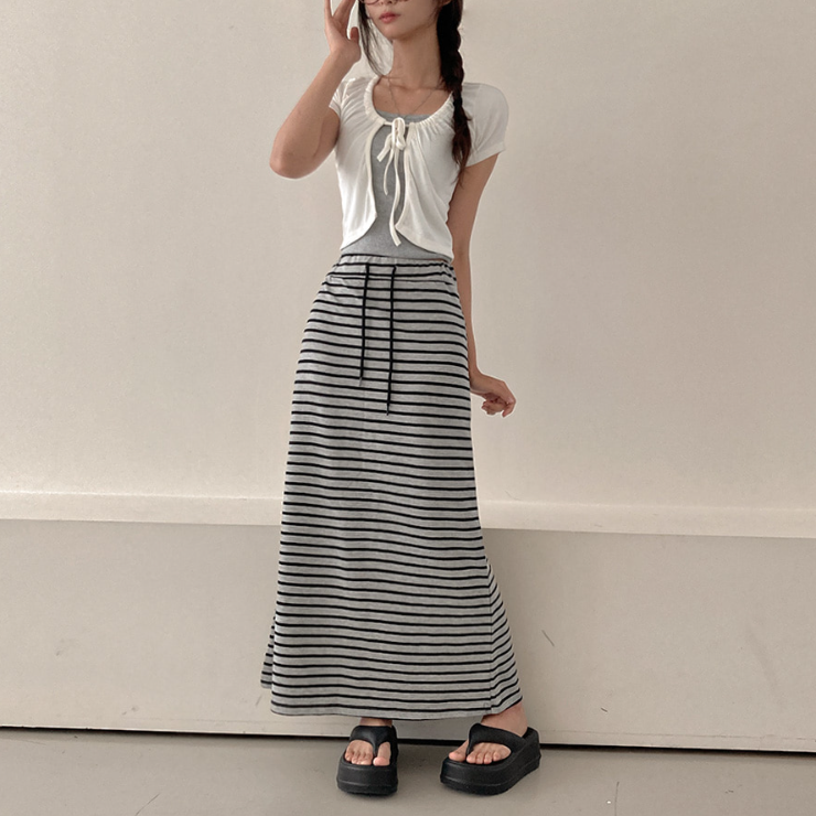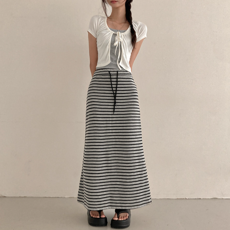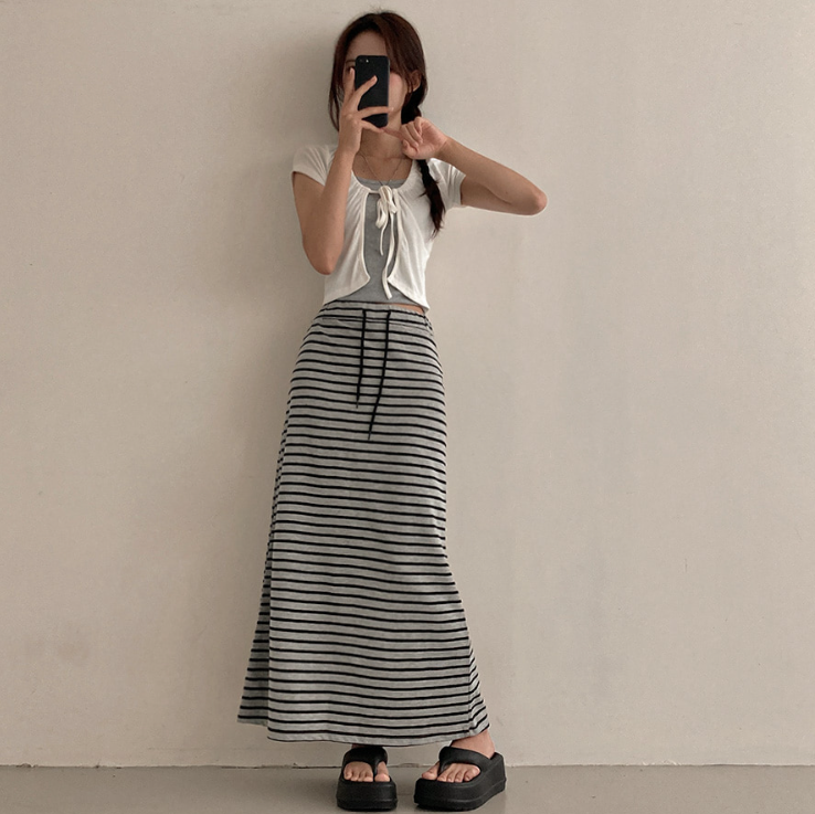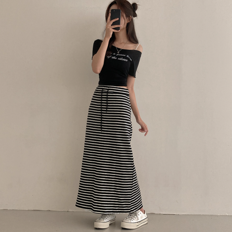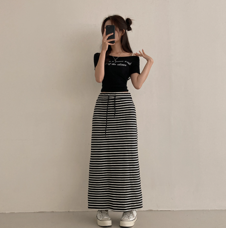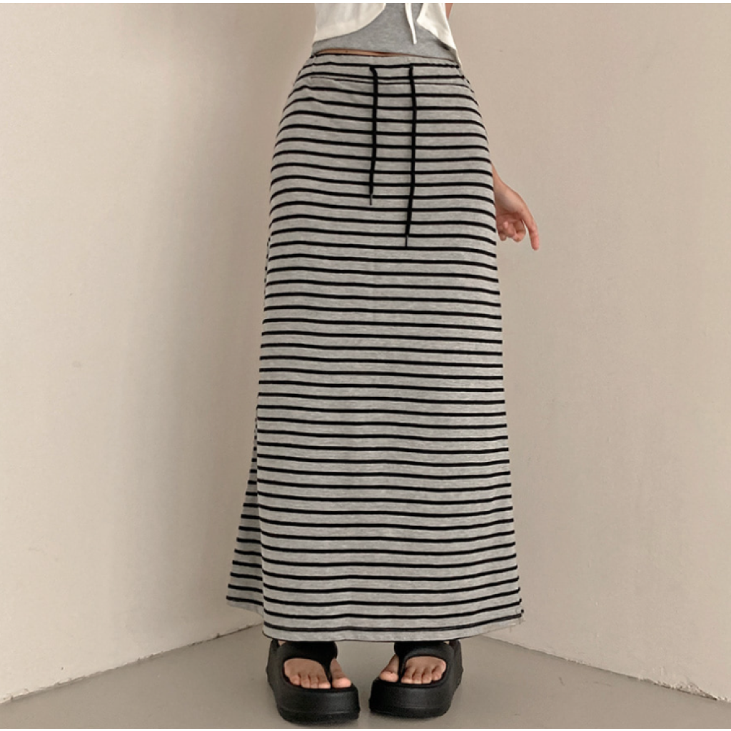 (•‾⌣‾•)橡筋腰條紋長裙💕可以遮蓋下身缺點拉高身形❤️