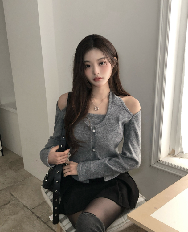 (•‾⌣‾•)好有設計感假兩件長袖❤️好有疊穿效果但又唔需要著好多件💕