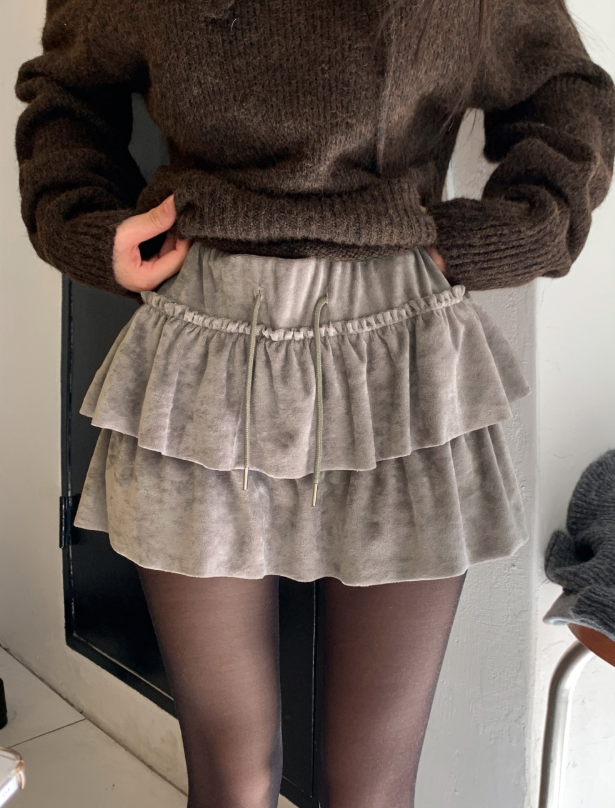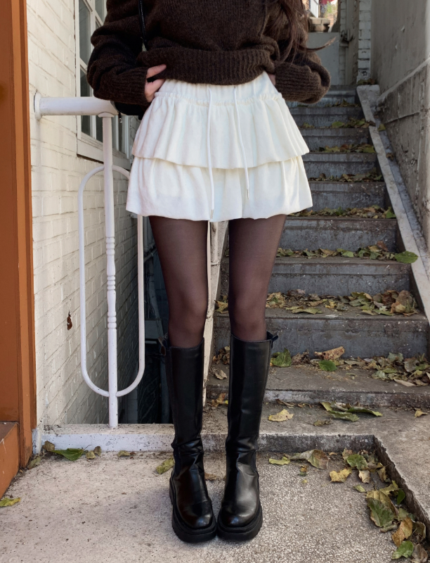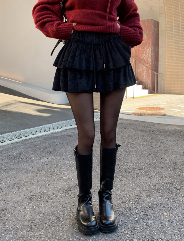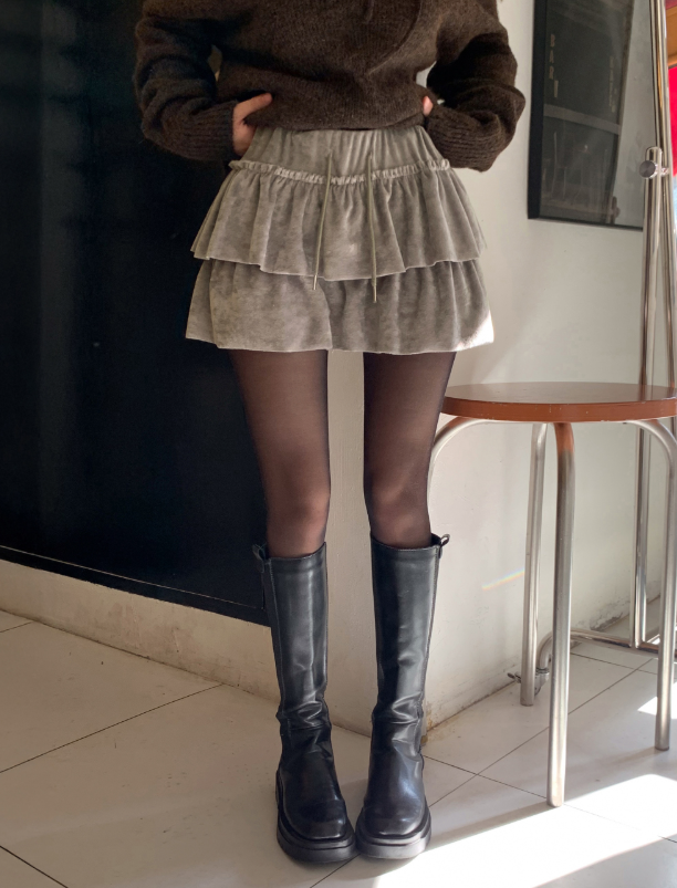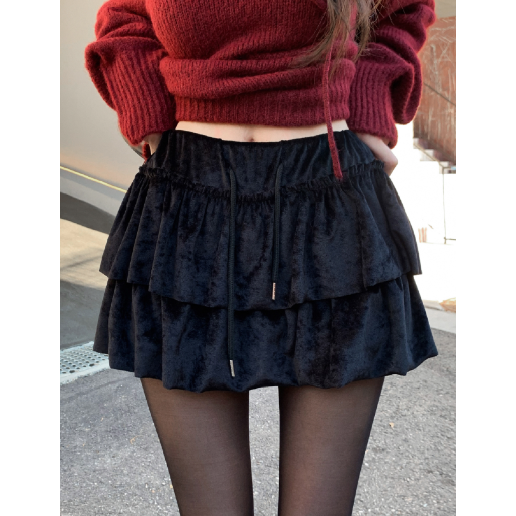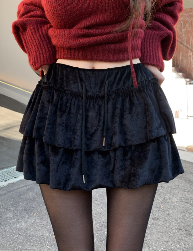 天鵝絨橡筋腰蛋糕裙【4色入】