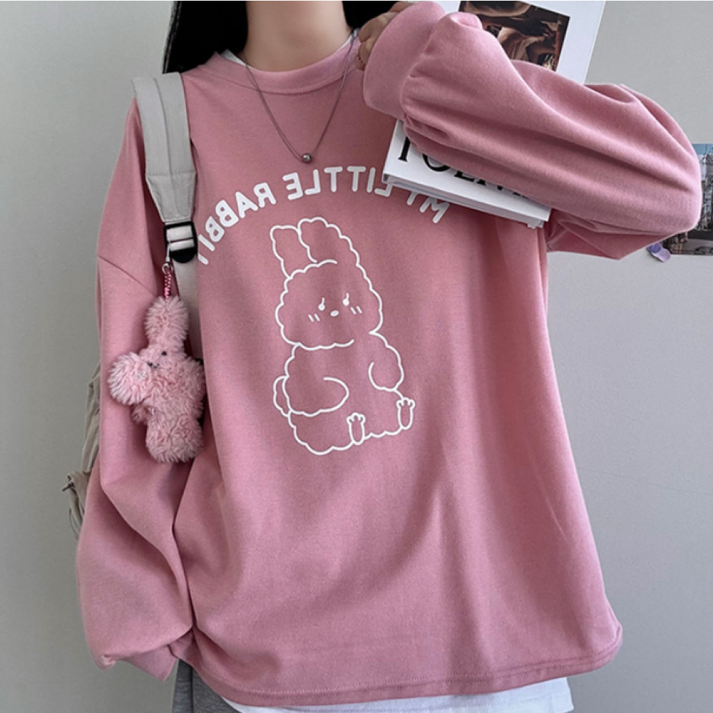 (•‾⌣‾•)可愛兔兔寬鬆T恤💕可當One Piece或上衣出街好方便❤️