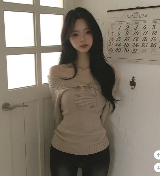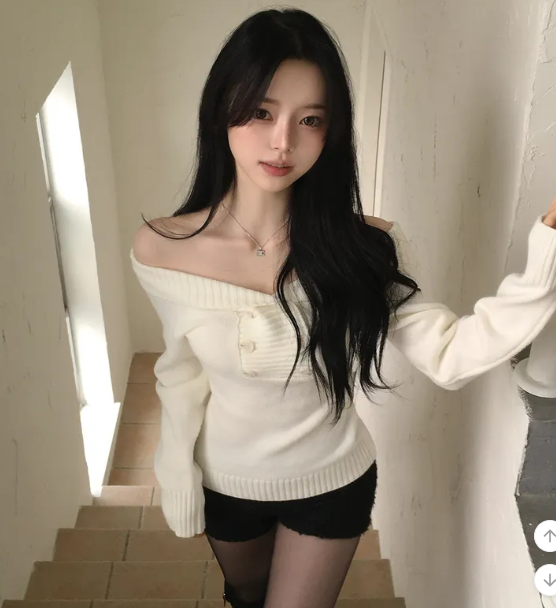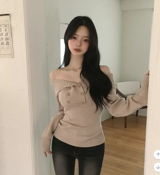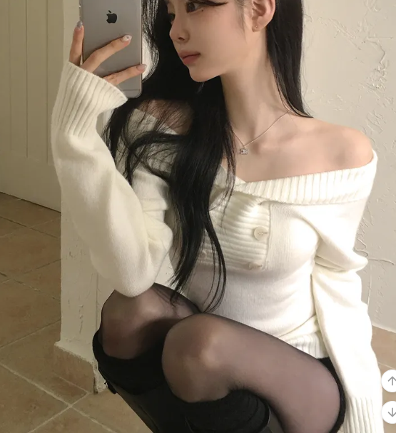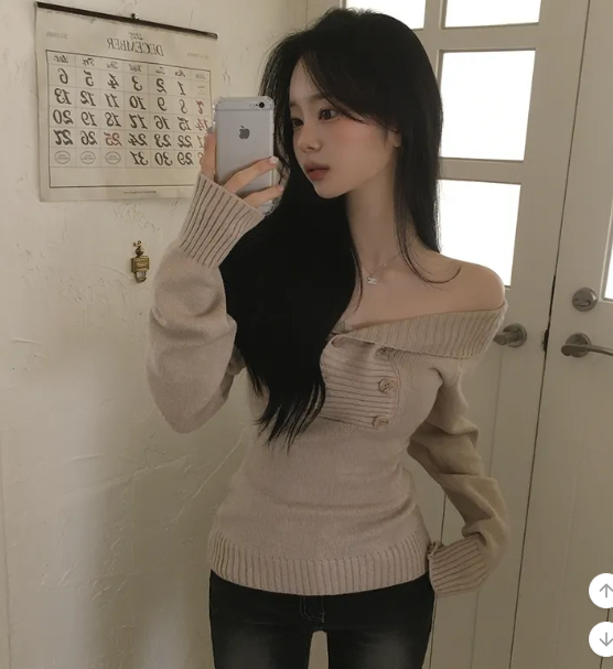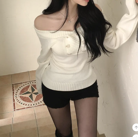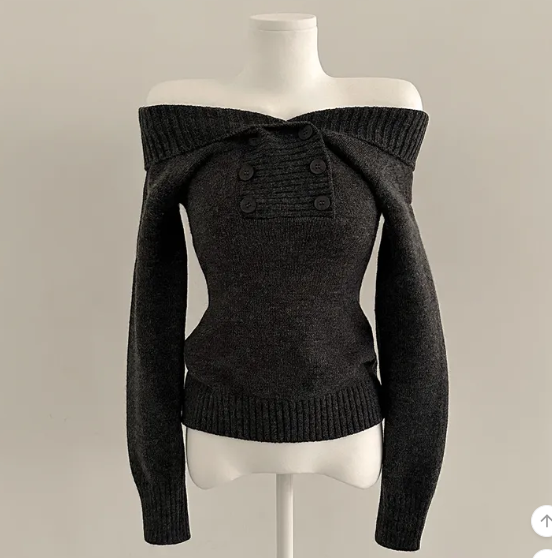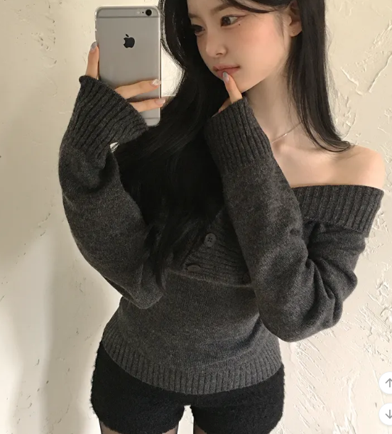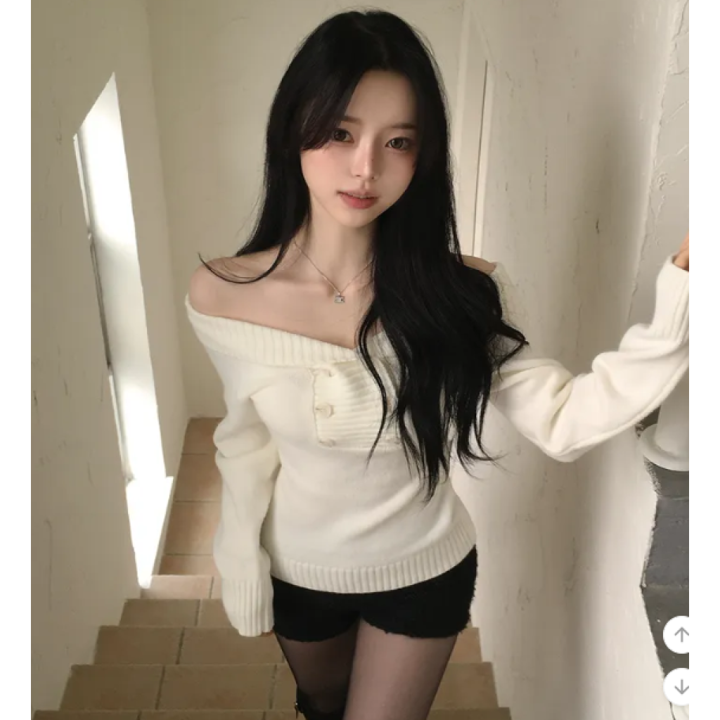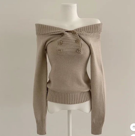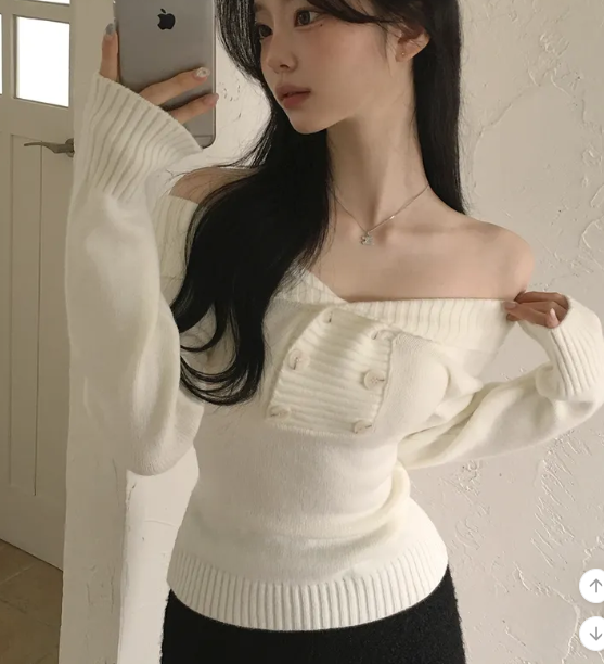 (•‾⌣‾•)好修腰既針織衫❤️加上露肩設計有點小性感💕