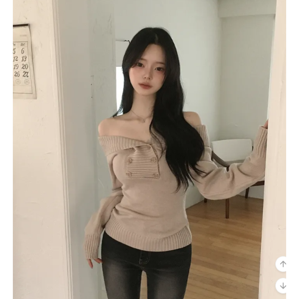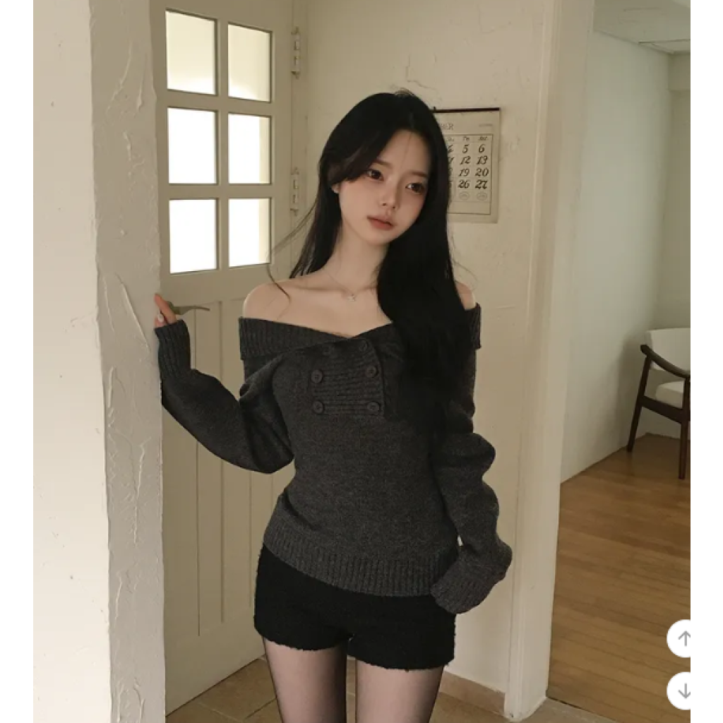 露肩紐扣針織長袖【3色入】