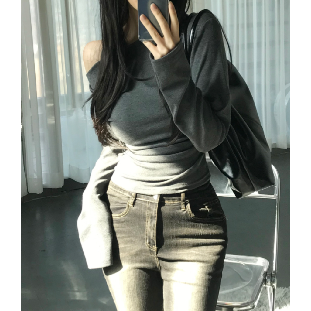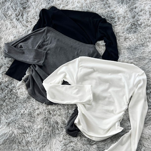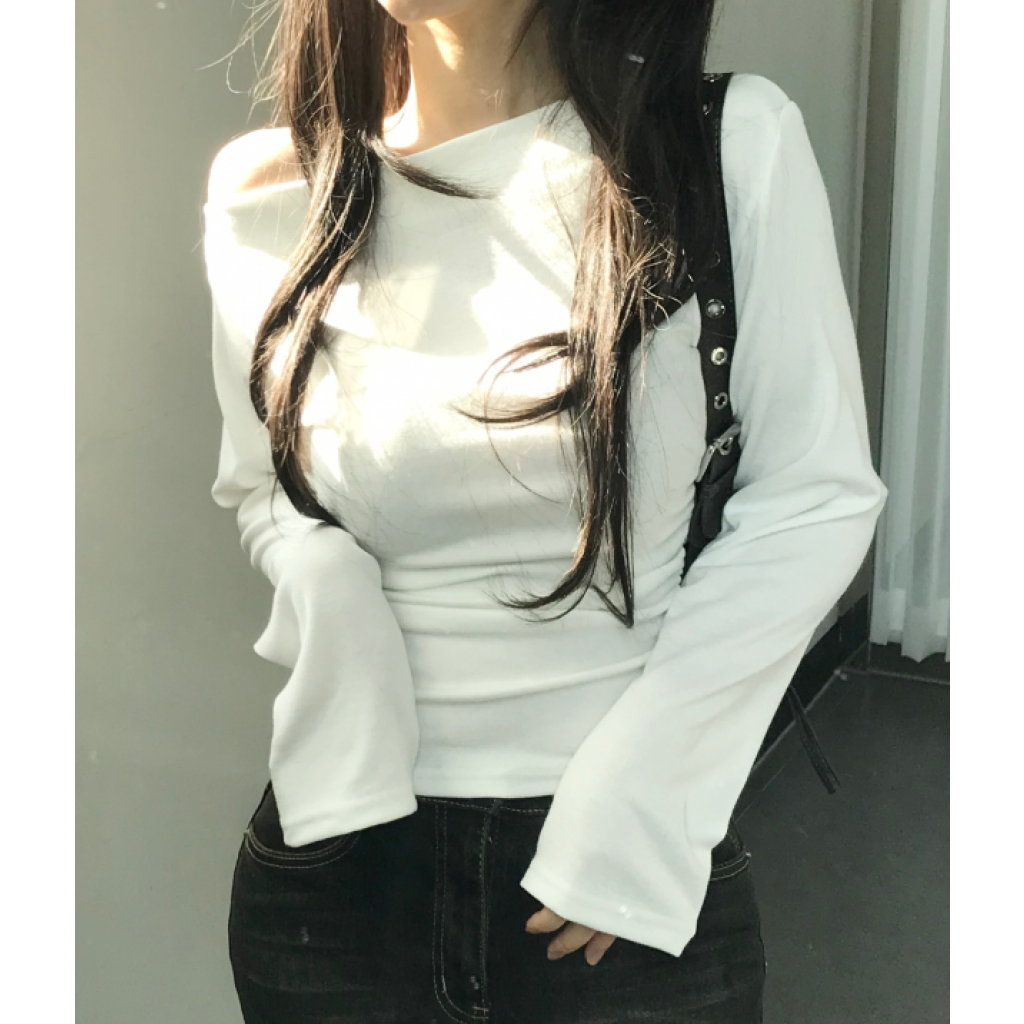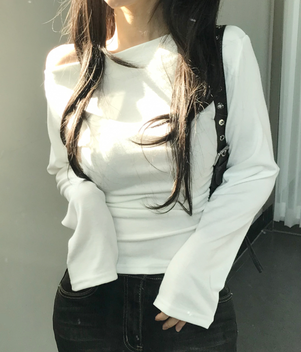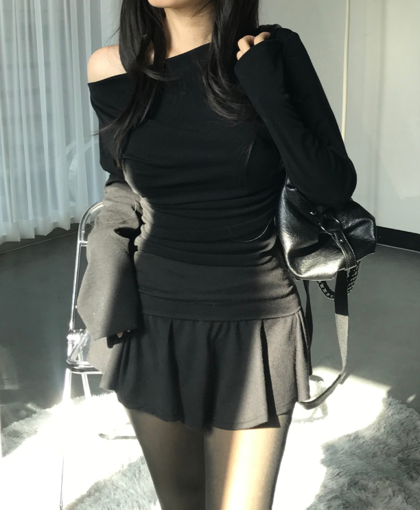(•‾⌣‾•)一字肩褶皺T恤❤️小部分露肩更性感可以配搭迷你裙就襯好一套💕