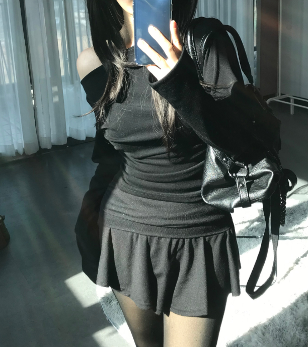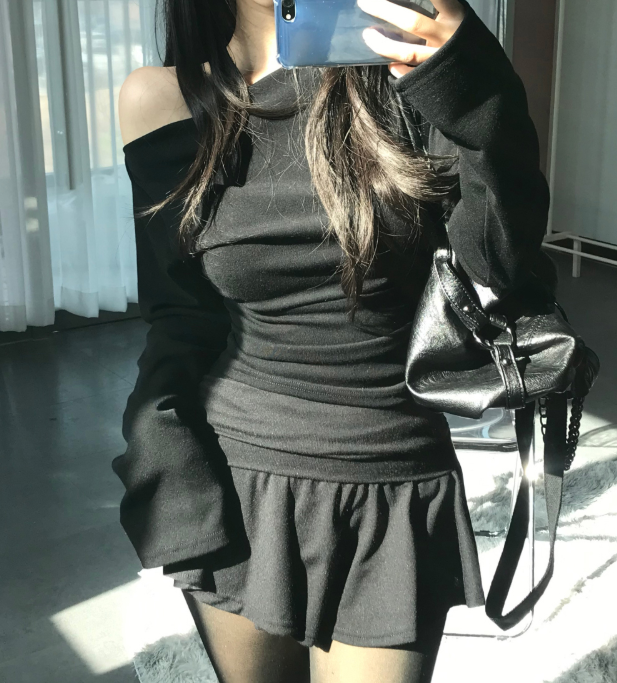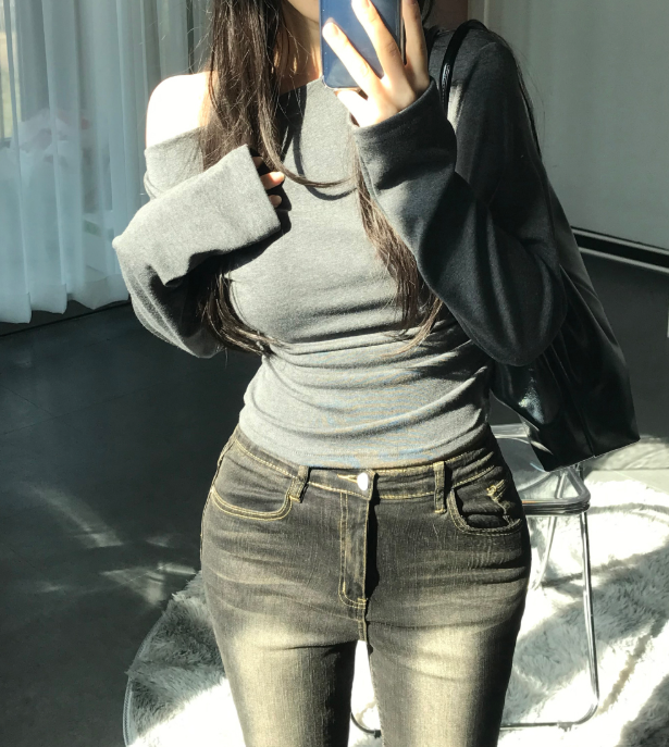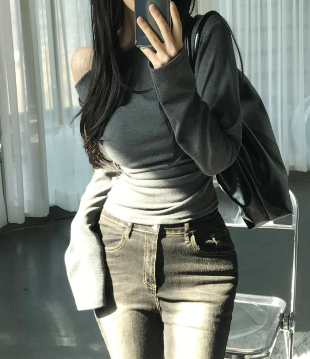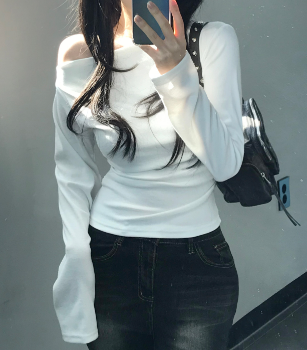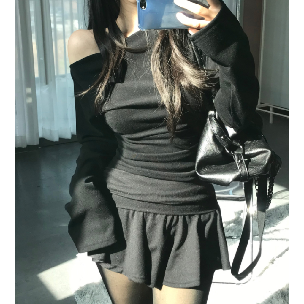(•‾⌣‾•)一字肩褶皺T恤❤️小部分露肩更性感可以配搭迷你裙就襯好一套💕