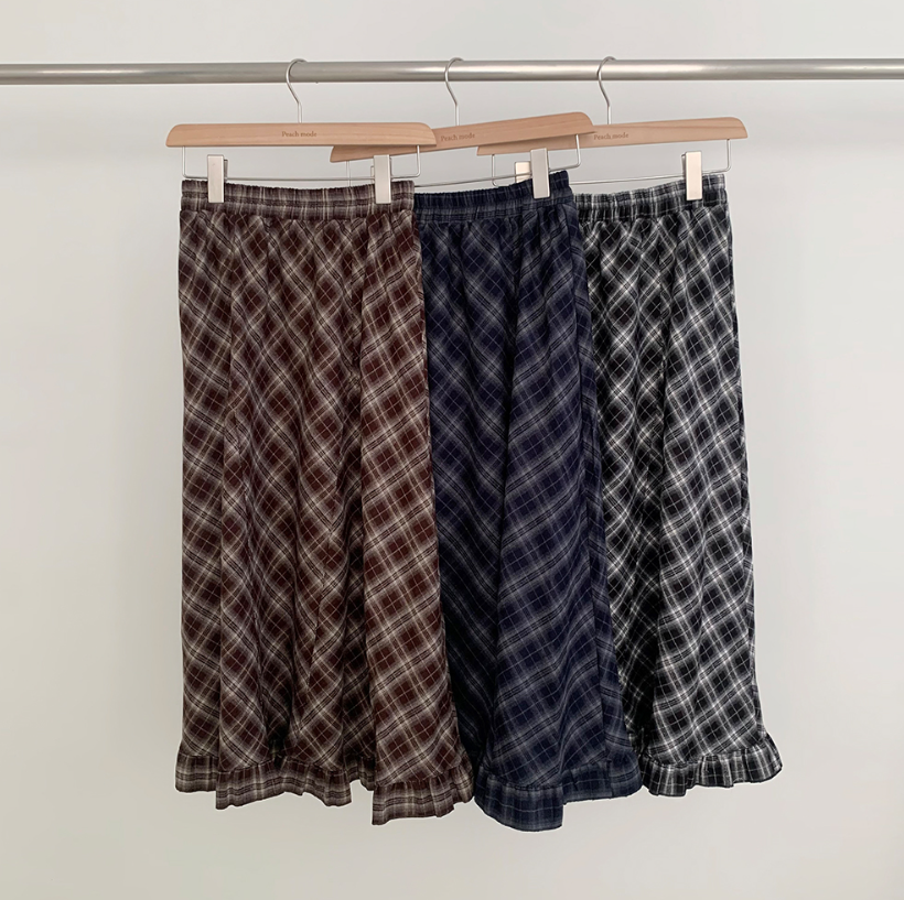格紋下擺荷葉邊長裙【3色入】