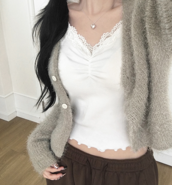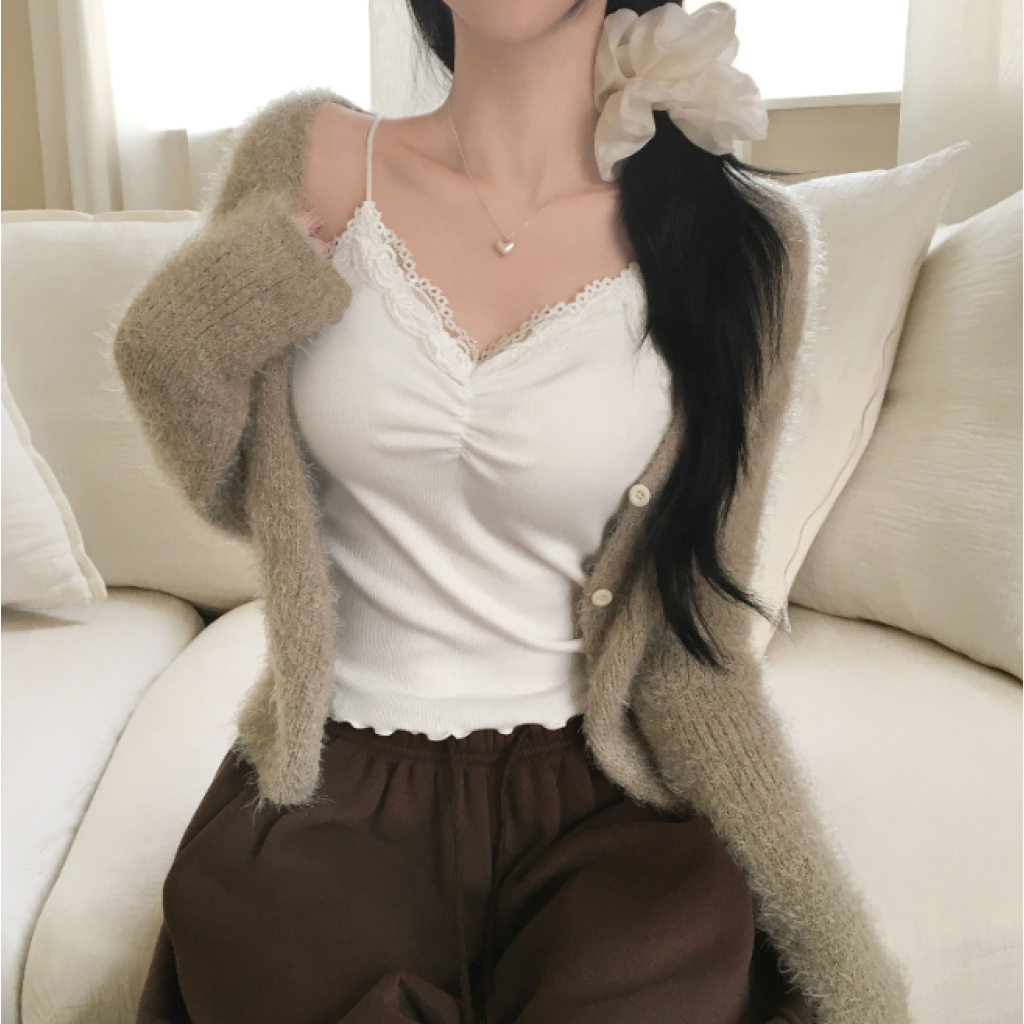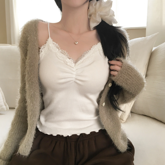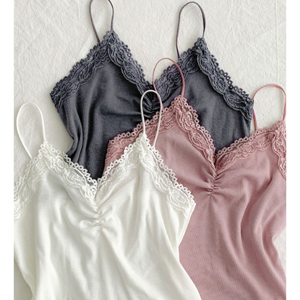 吊帶蕾絲褶皺背心【3色入】