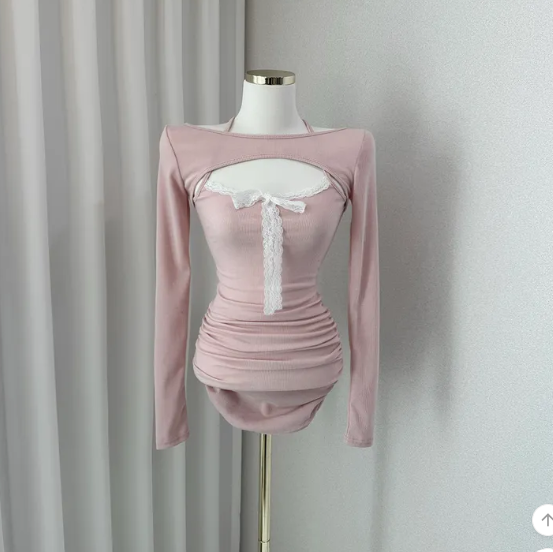 (•‾⌣‾•)有點小性感既貼身連身裙❤️領口鏤空設計好迷人好適合情人節出街約會💕