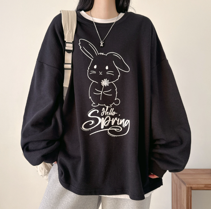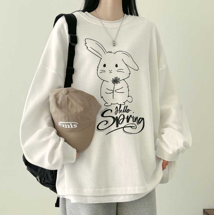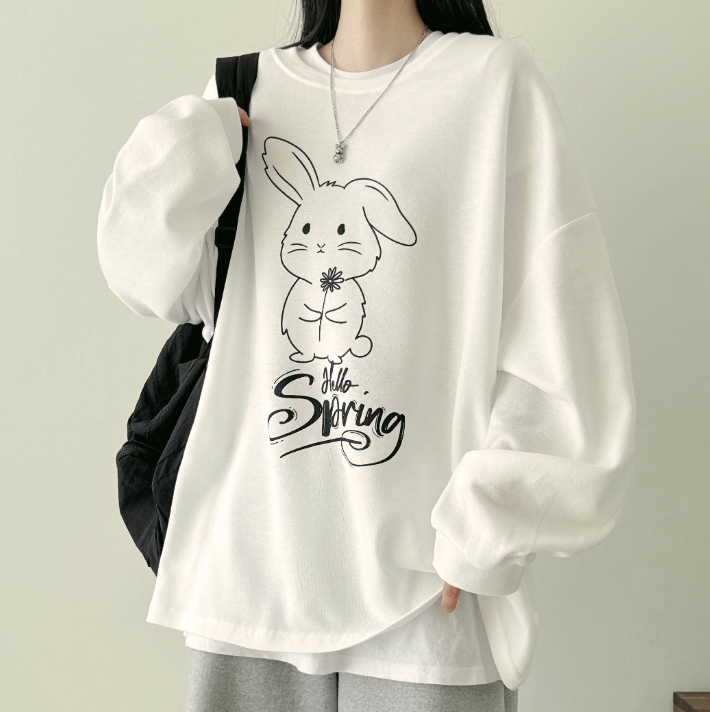 (•‾⌣‾•)可愛兔仔T恤長袖💕日常配搭好方便❤️