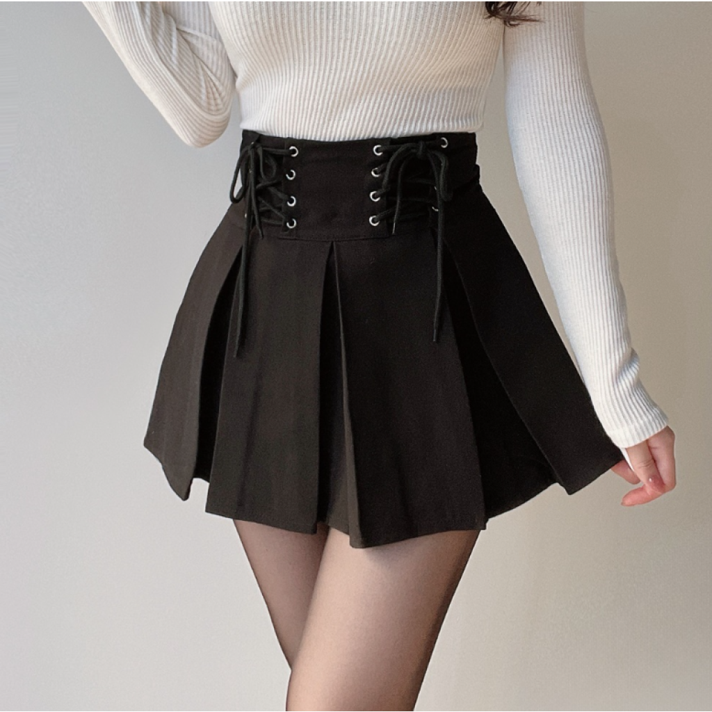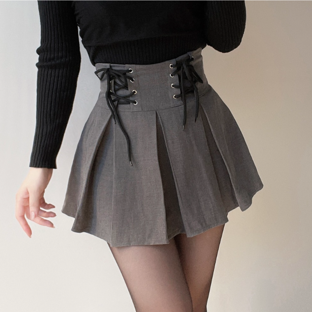 (•‾⌣‾•)綁帶百褶裙❤️前面綁帶設計更顯腰細顯瘦💕