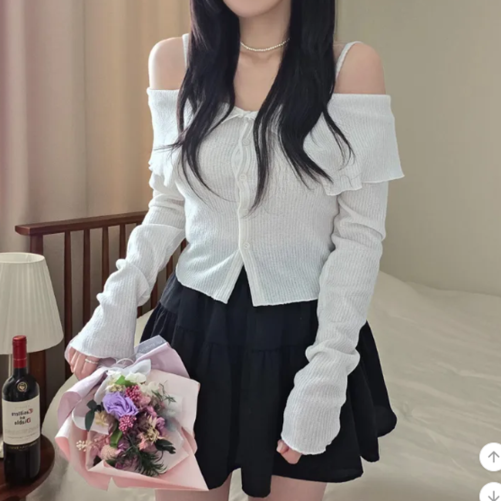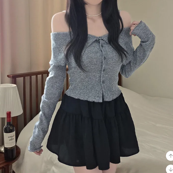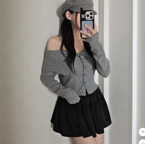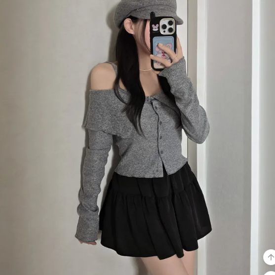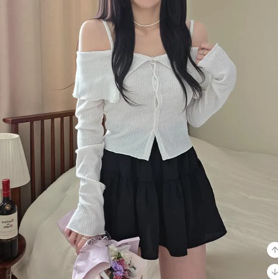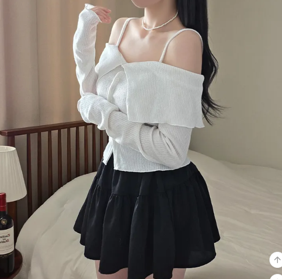 (•‾⌣‾•)簡約吊帶一字肩長袖❤️好適合回暖後天氣單穿💕