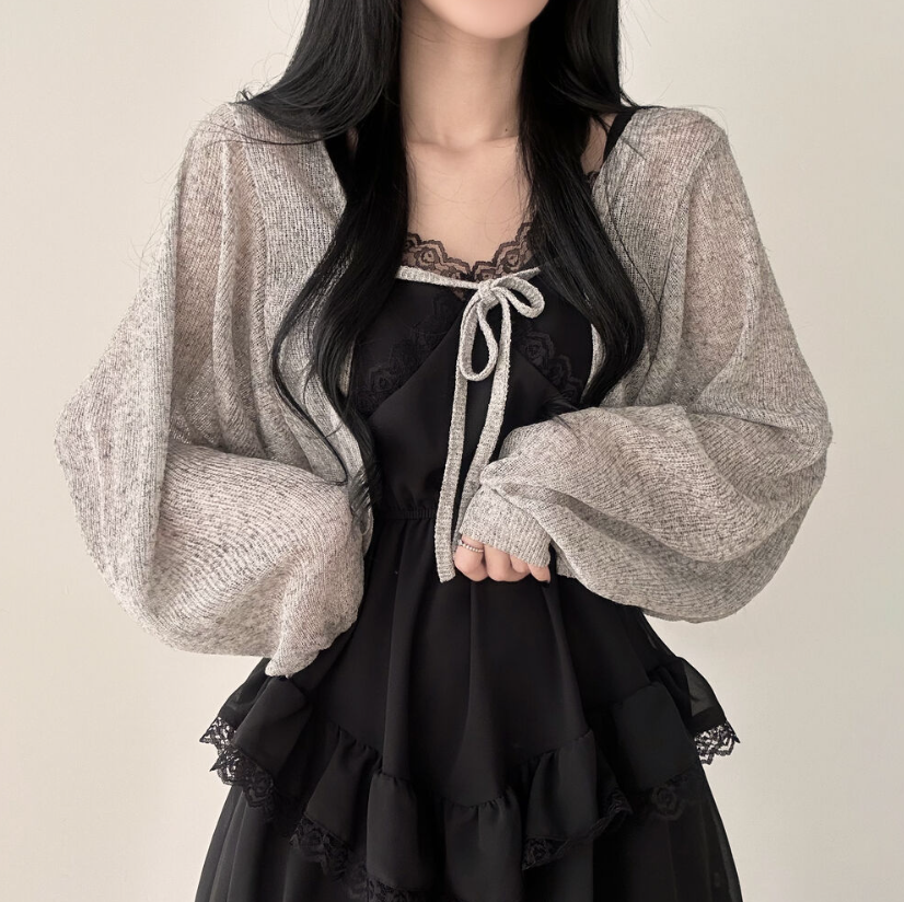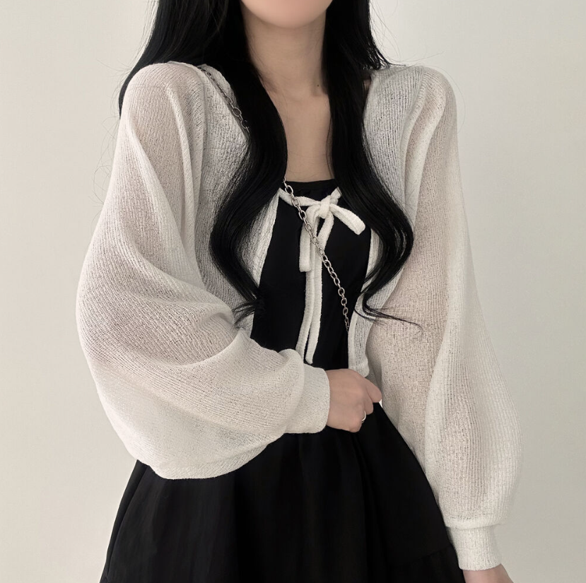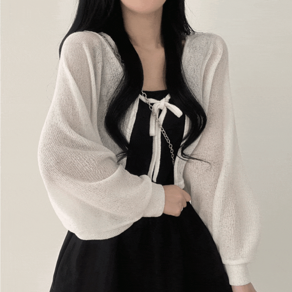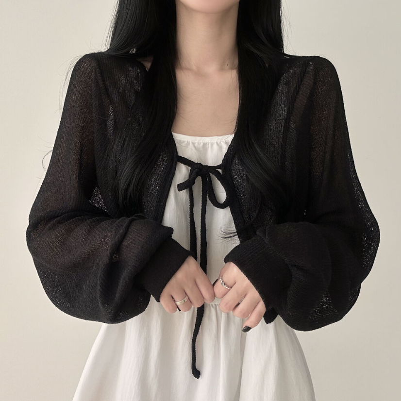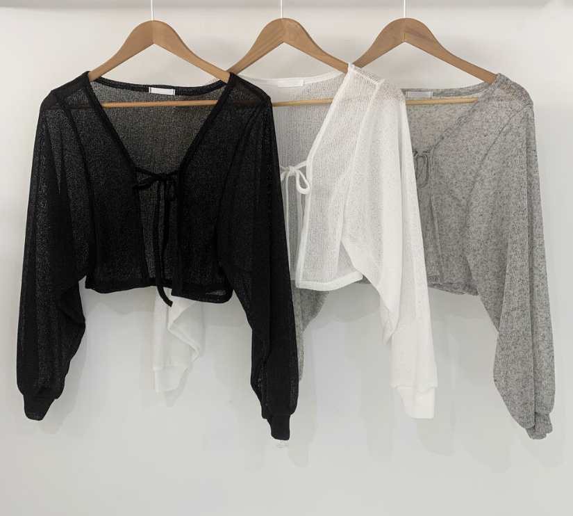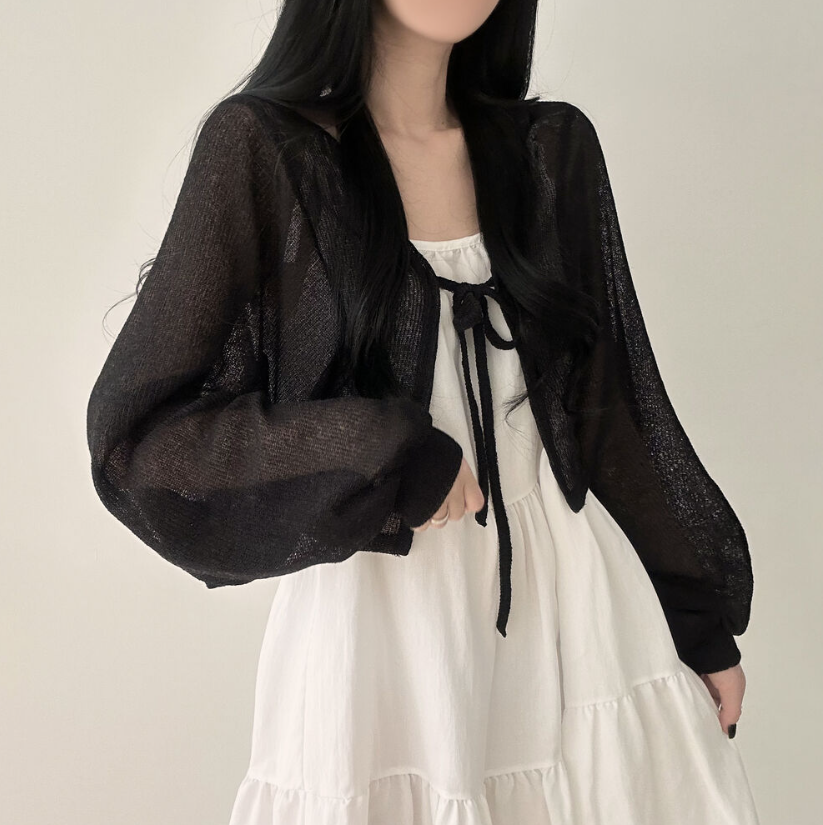 透薄綁帶三色針織外套
