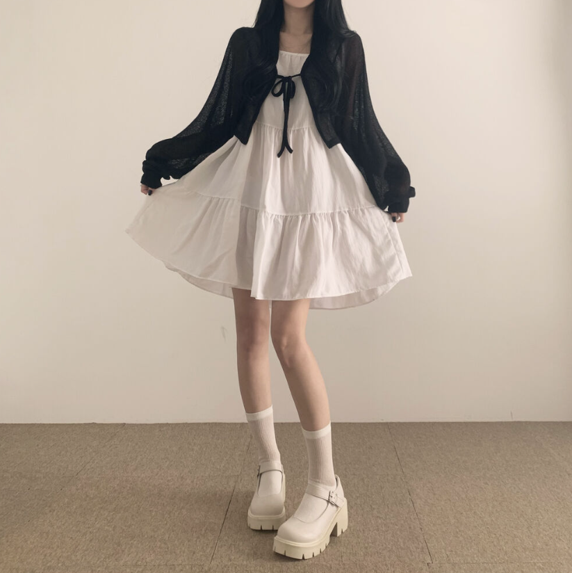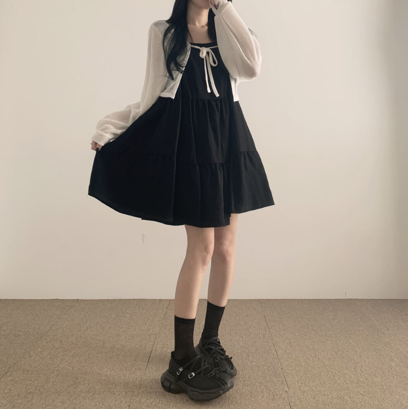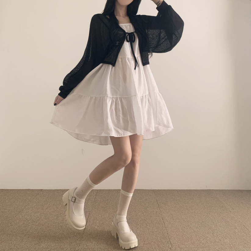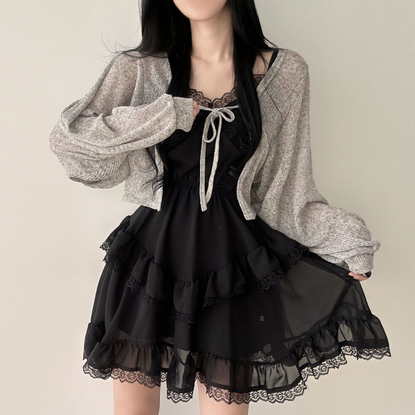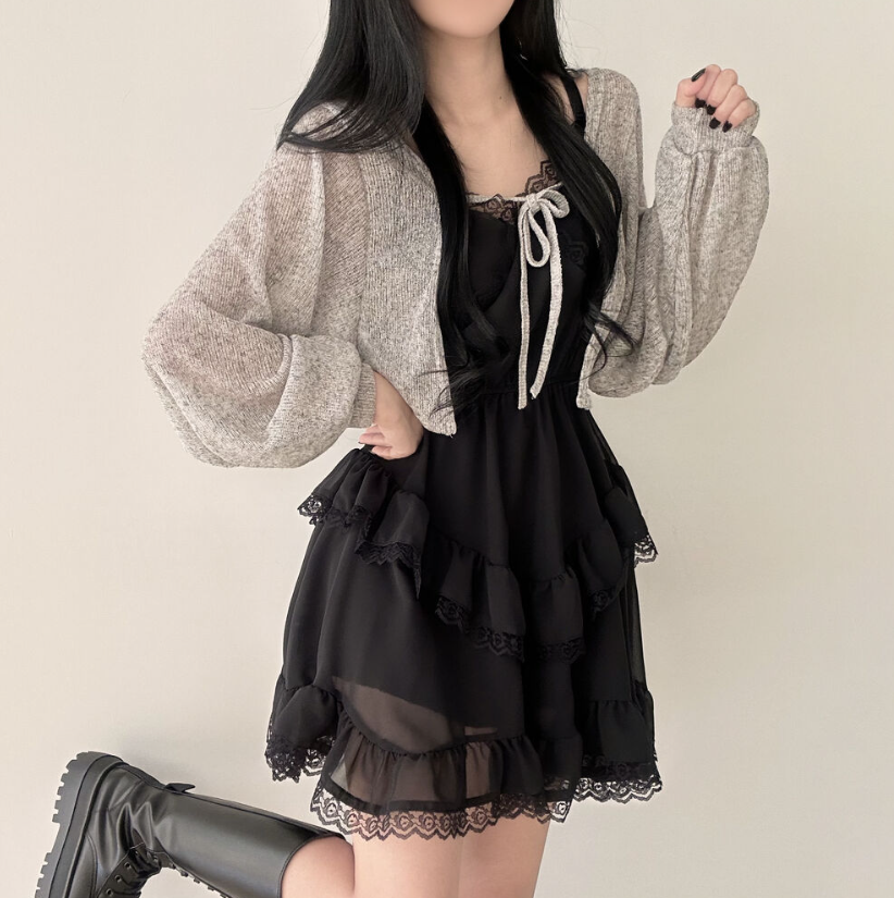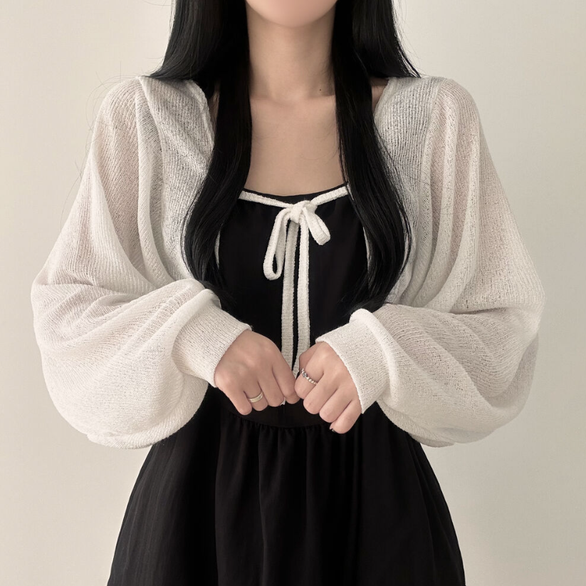 透薄綁帶三色針織外套
