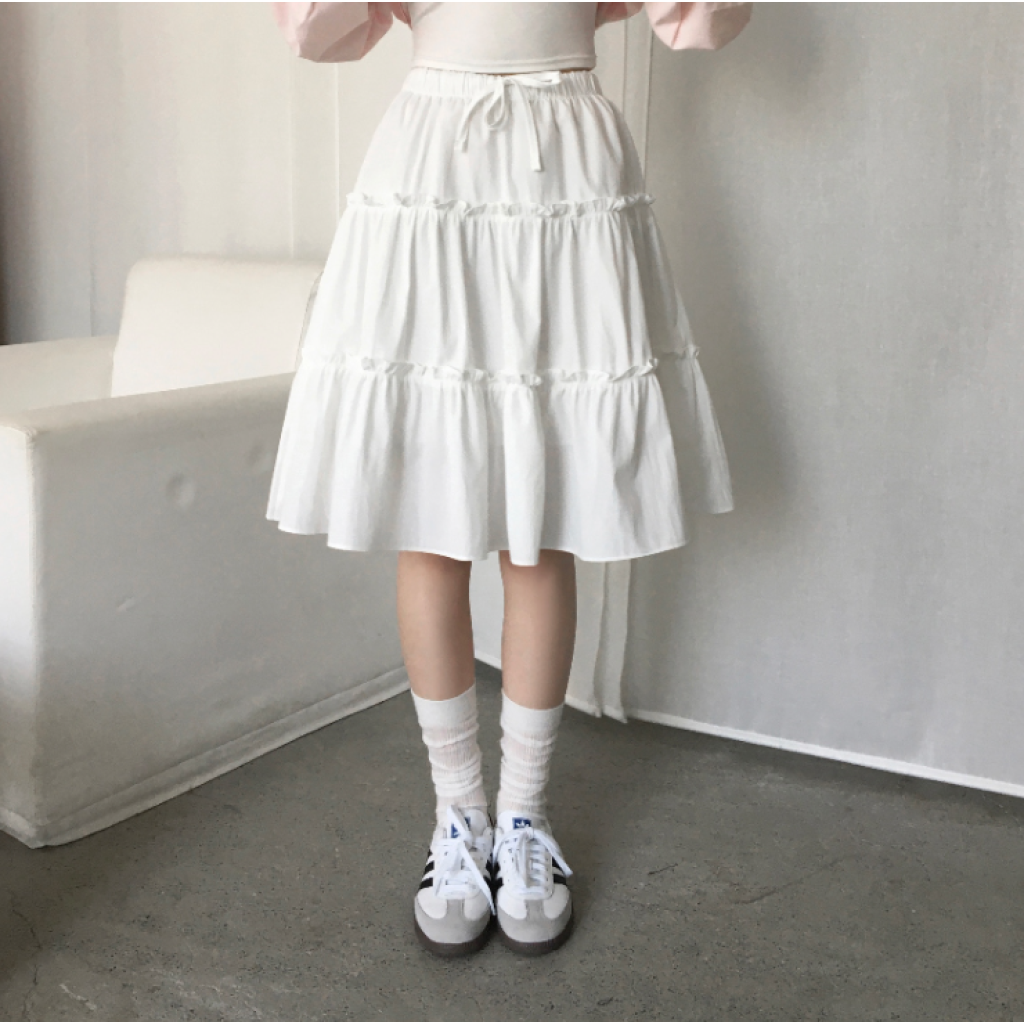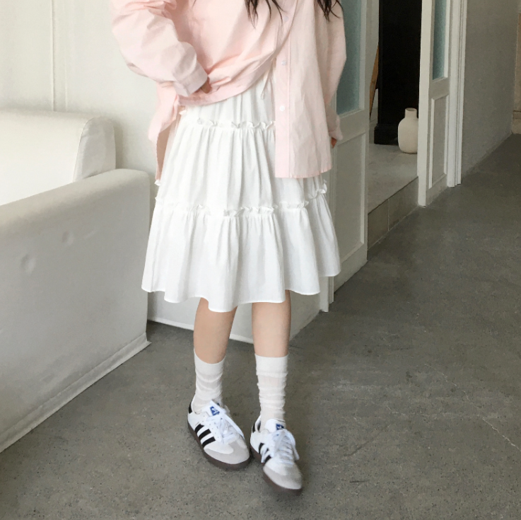荷葉邊中長裙【2色入】