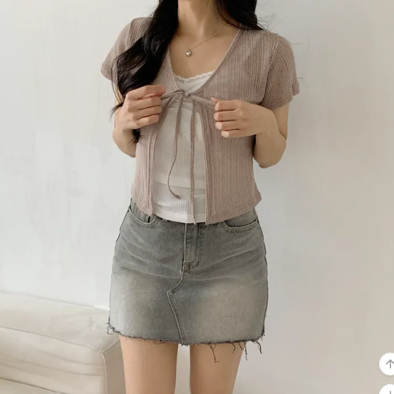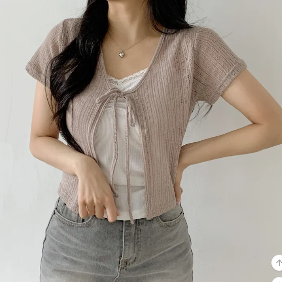 (•‾⌣‾•)溫柔針織外套❤️綁帶設計俏皮減齡💕短款版型顯高又百搭