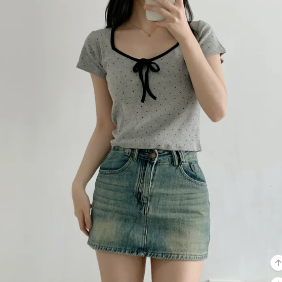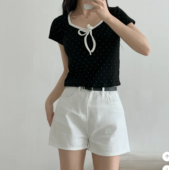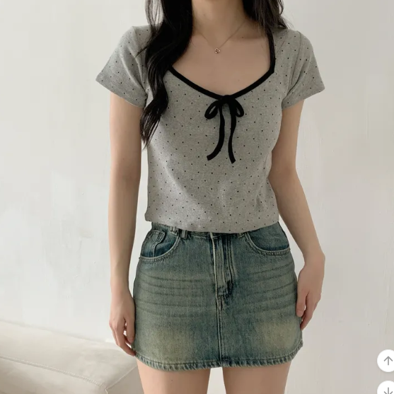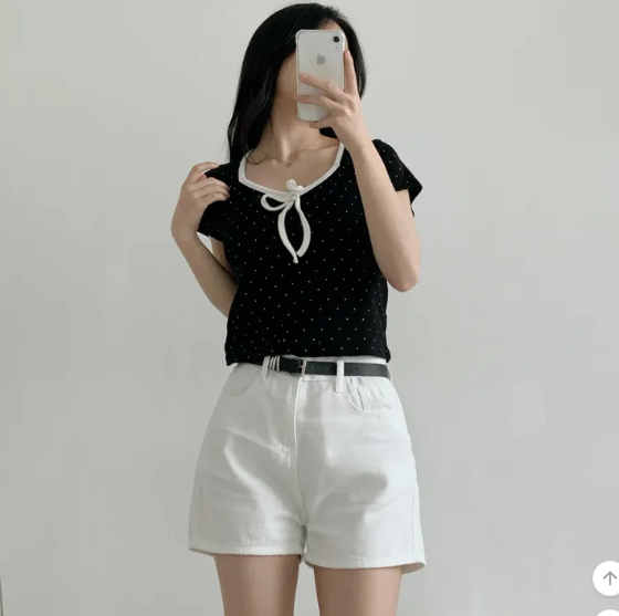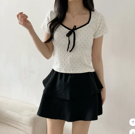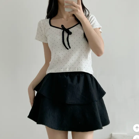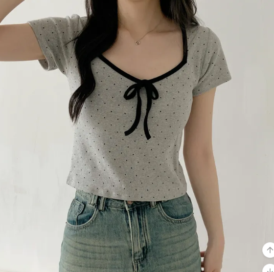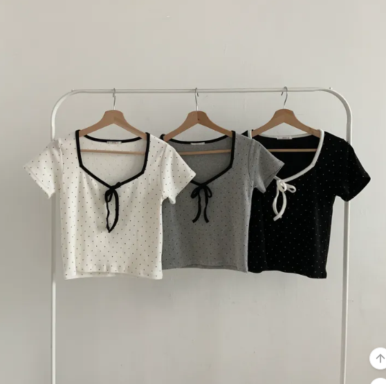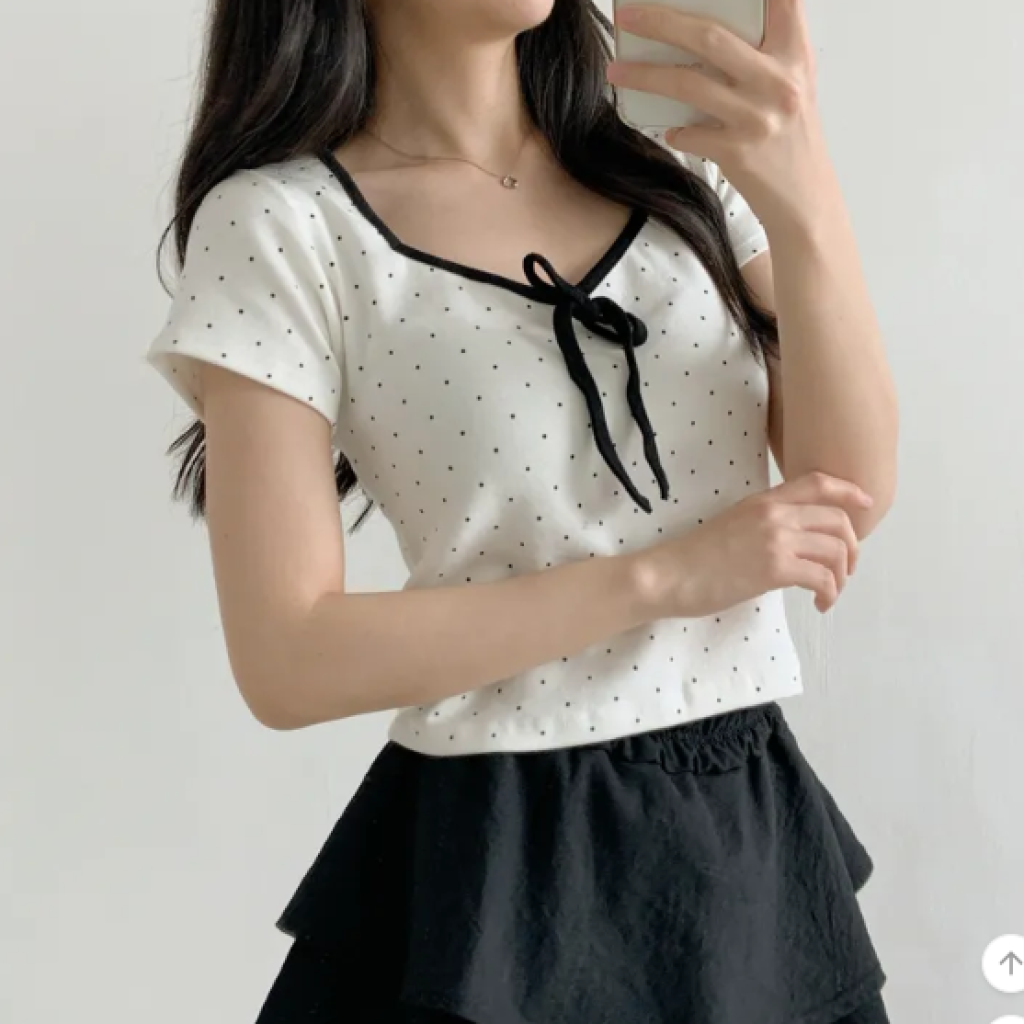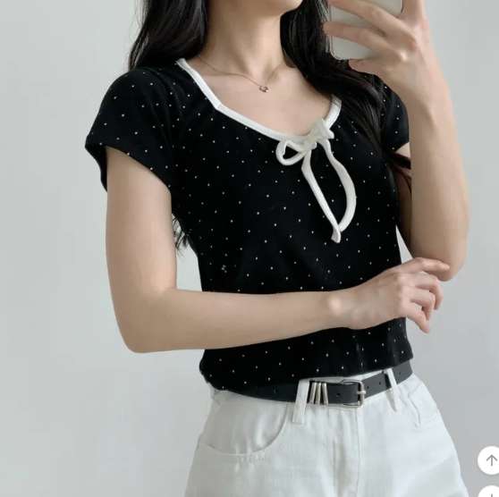 (•‾⌣‾•)清新波點短款上衣❤️胸前蝴蝶結點綴💕夏日穿搭超吸睛