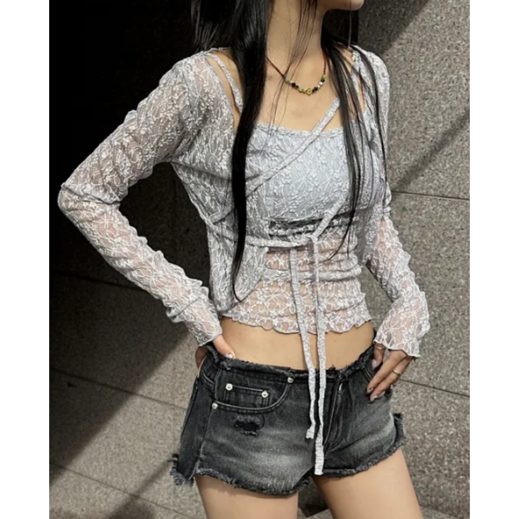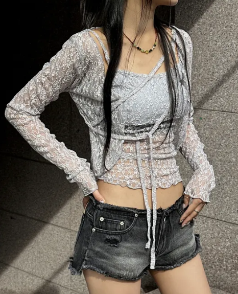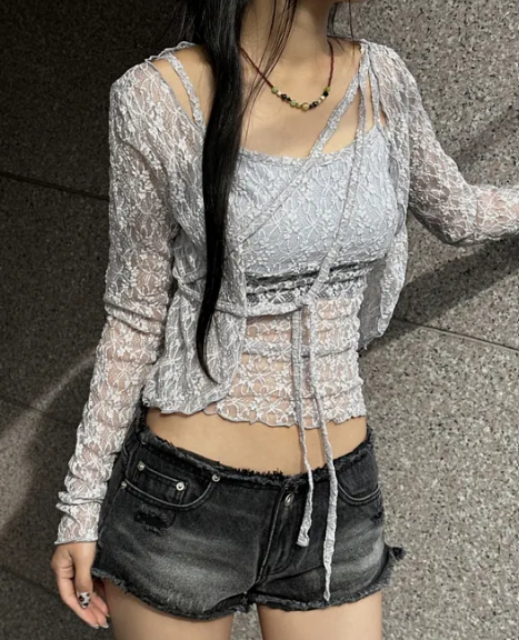 (•‾⌣‾•)蕾絲兩件套透膚鏤空設計💕甜辣又純欲❤️日常約會都超吸睛✨