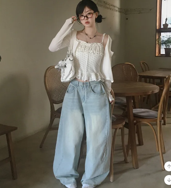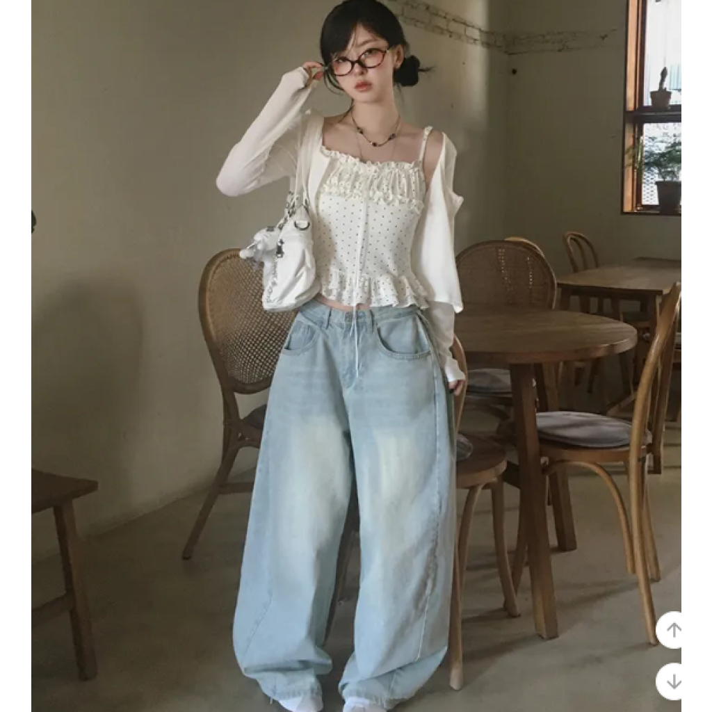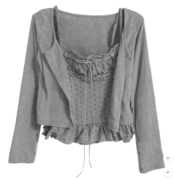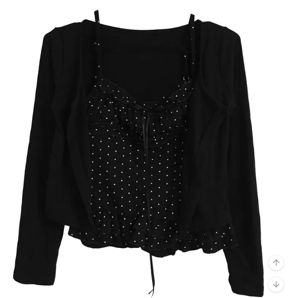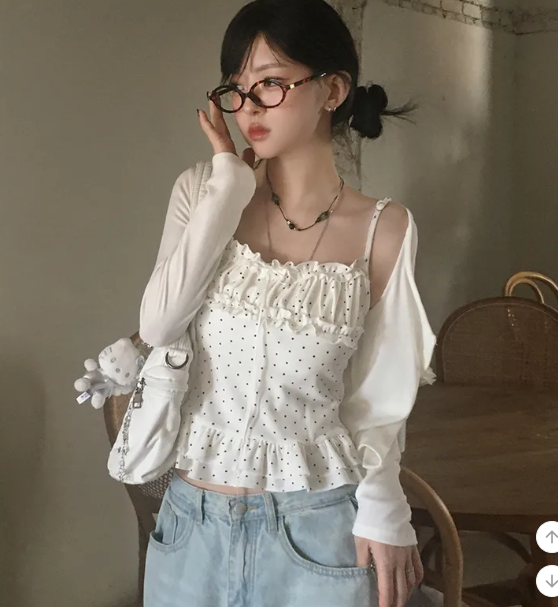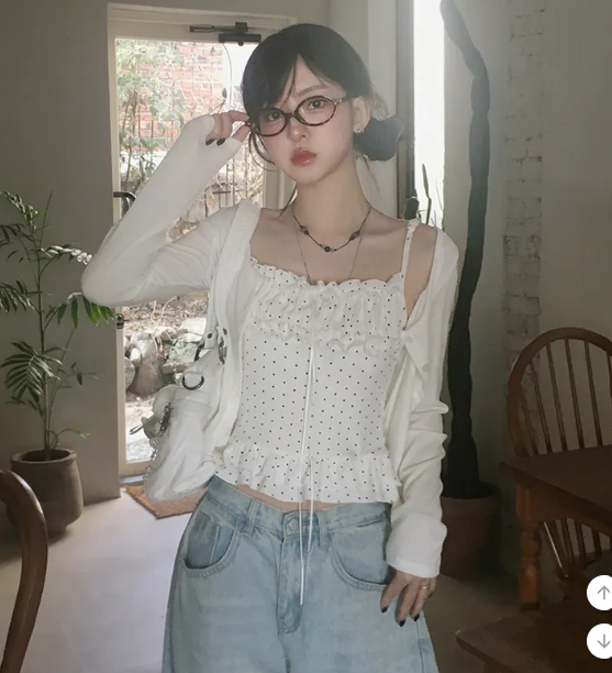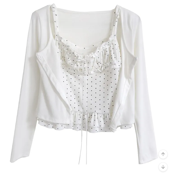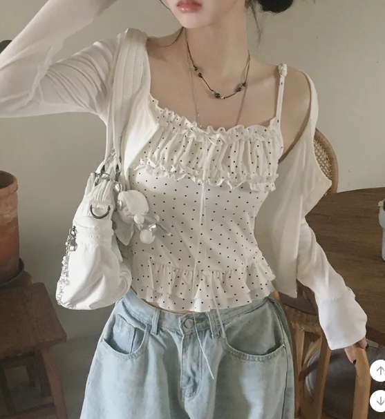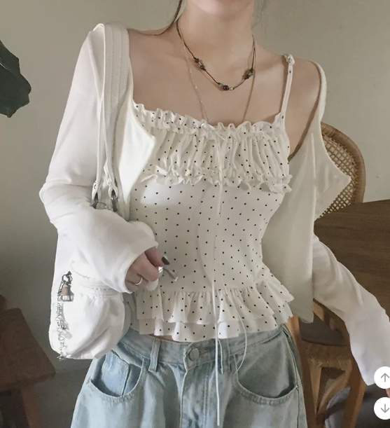 (•‾⌣‾•)波點荷葉邊吊帶搭配柔軟外套❤️層次感滿滿💕日常約會都超吸睛