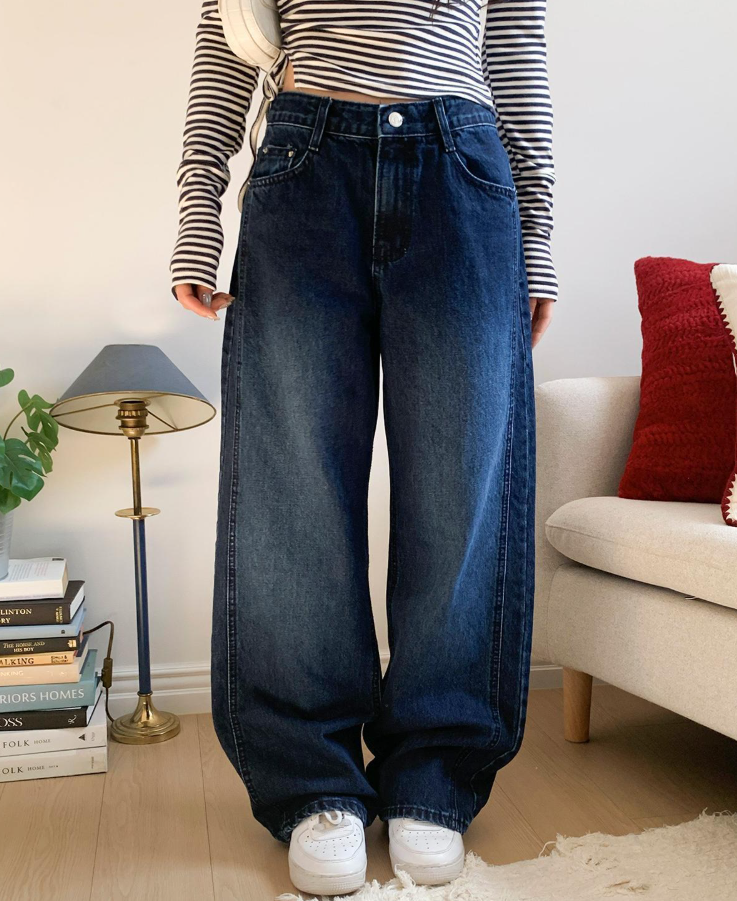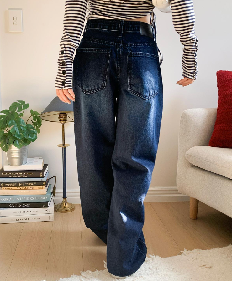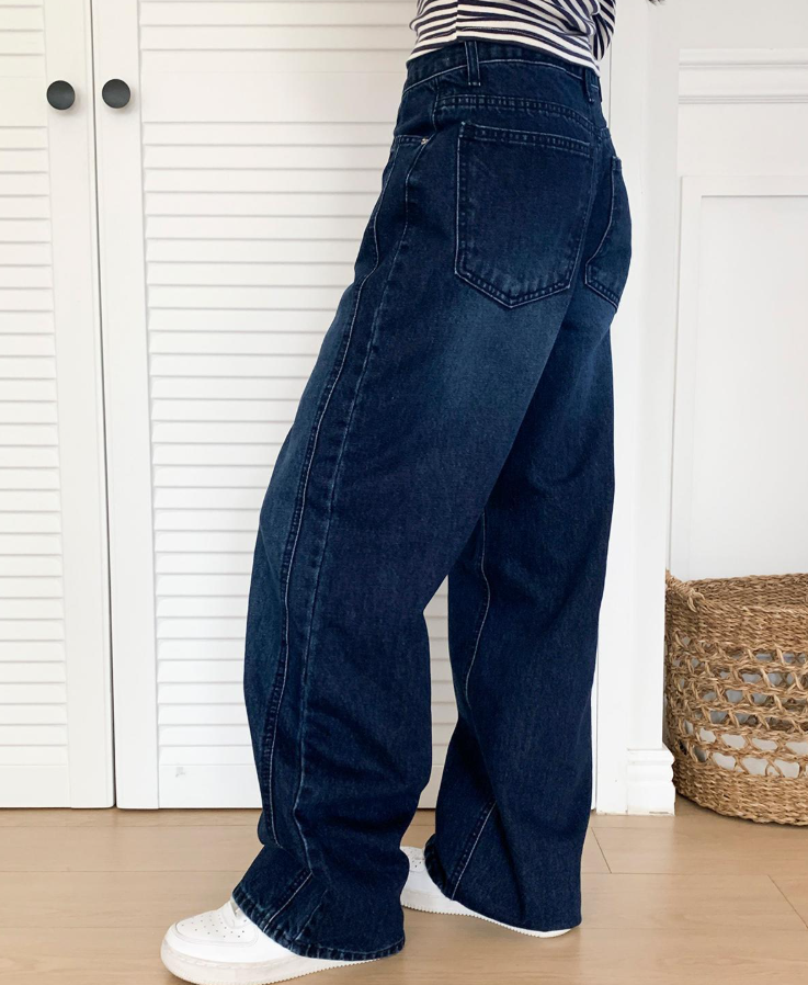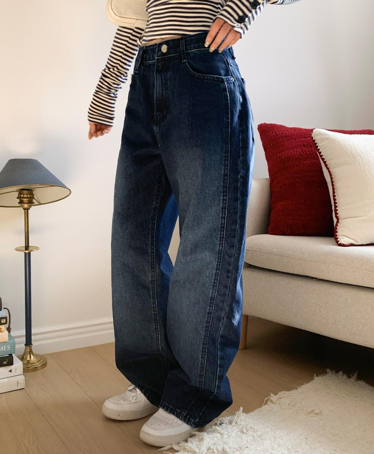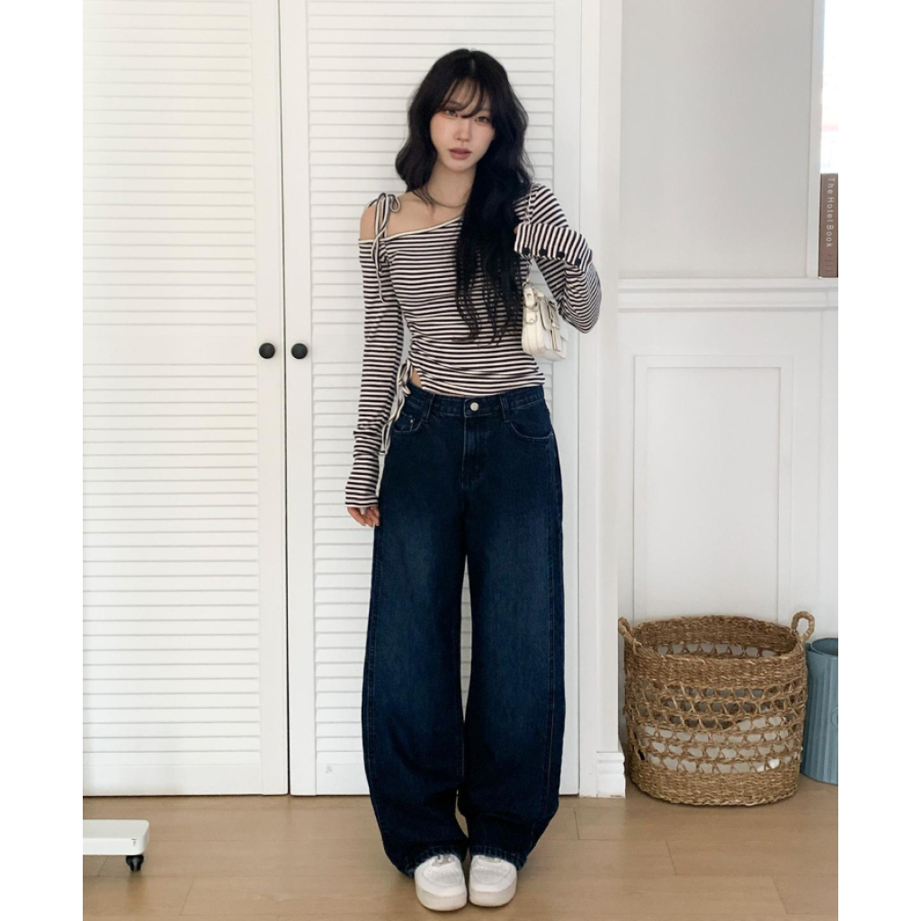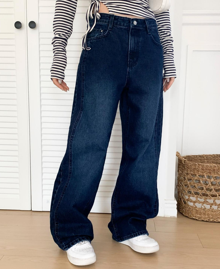 ヽ( ^ω^ ゞ )復古深藍闊腿牛仔褲垂墜感十足❤️修飾腿型超顯瘦💕日常百搭必入單品