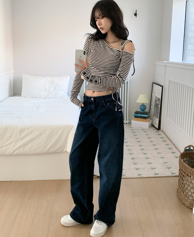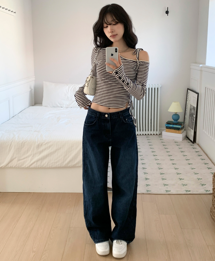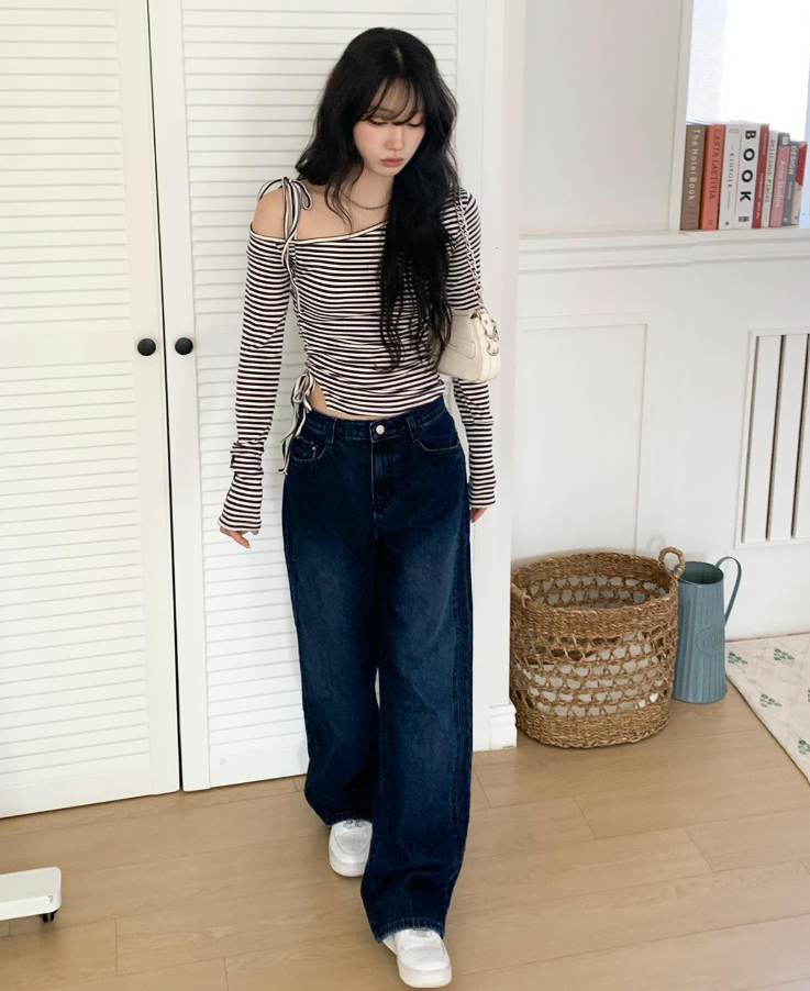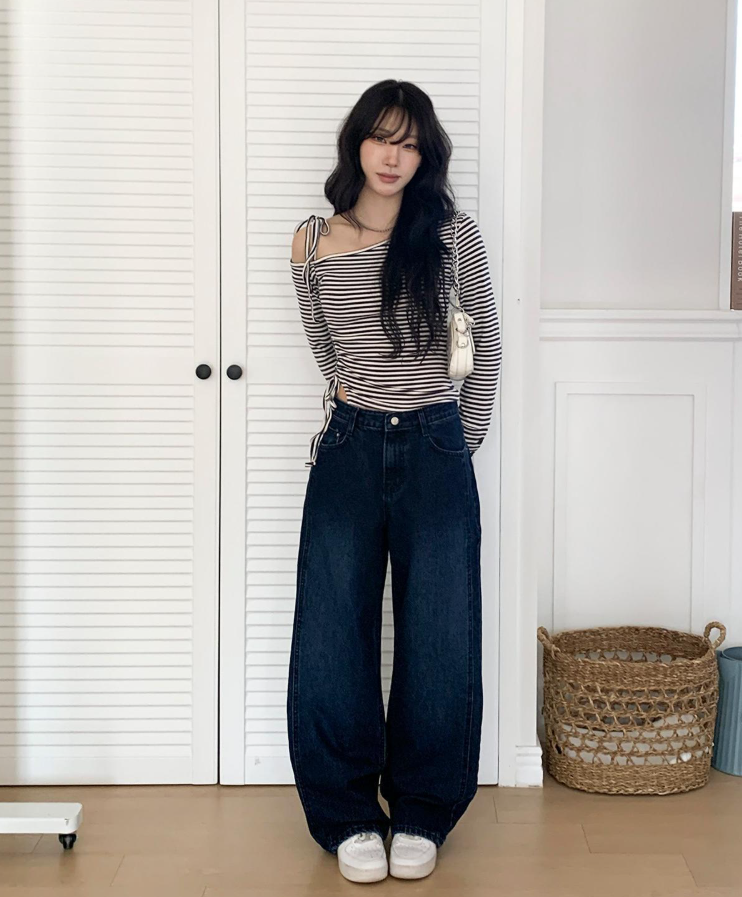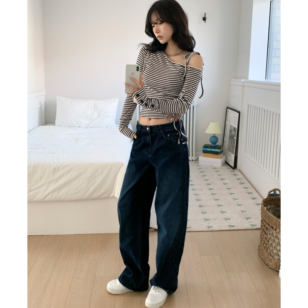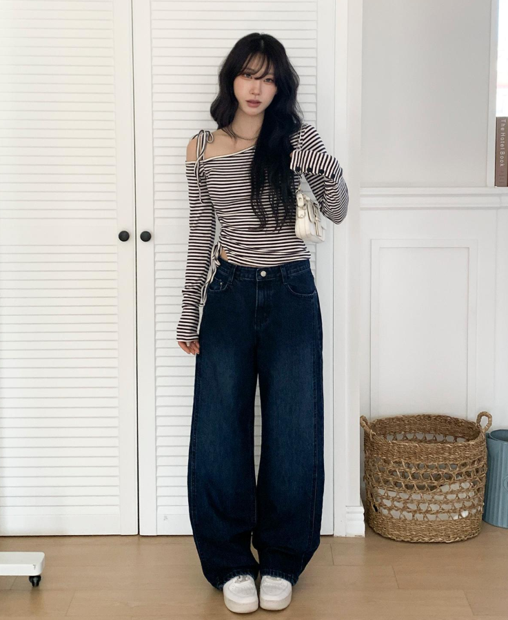 ヽ( ^ω^ ゞ )復古深藍闊腿牛仔褲垂墜感十足❤️修飾腿型超顯瘦💕日常百搭必入單品