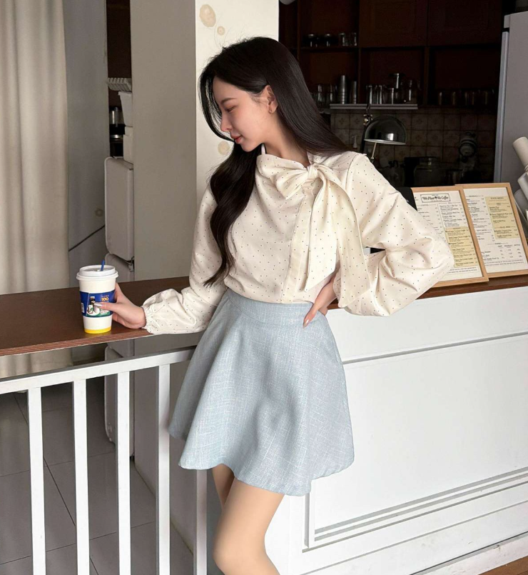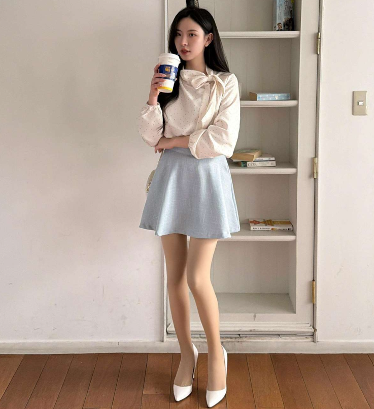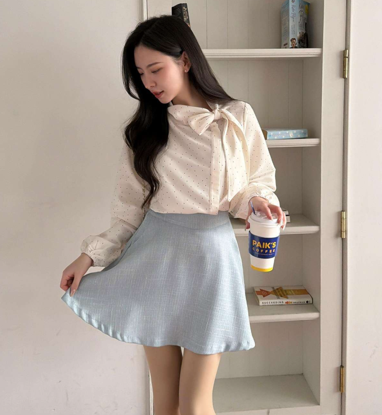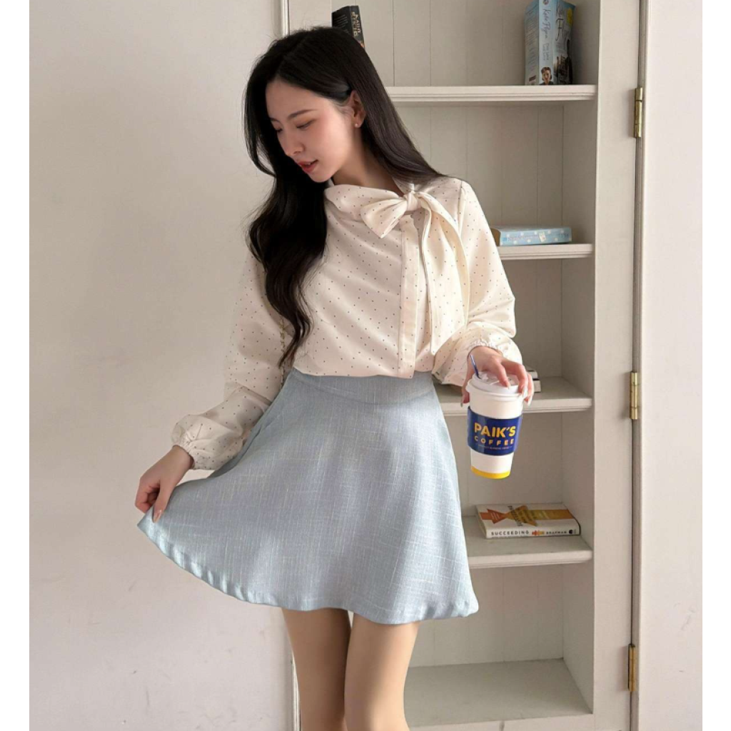 (•‾⌣‾•)清新A字短裙細緻紋理質感滿滿❤️高腰設計顯腿長💕日常約會都好配搭