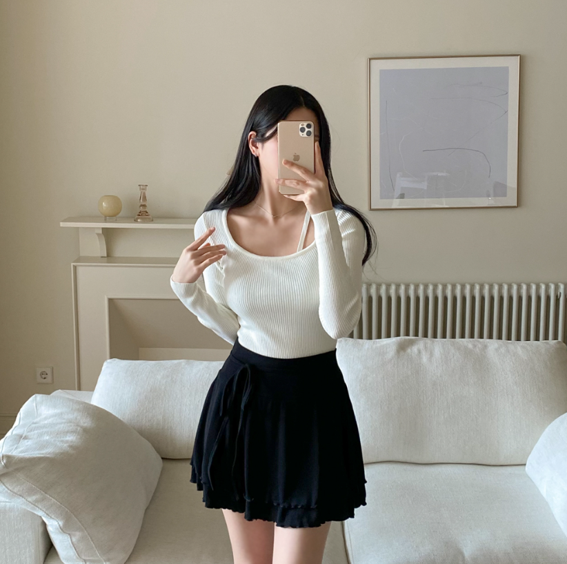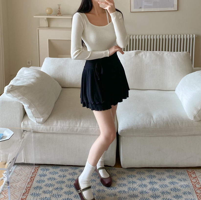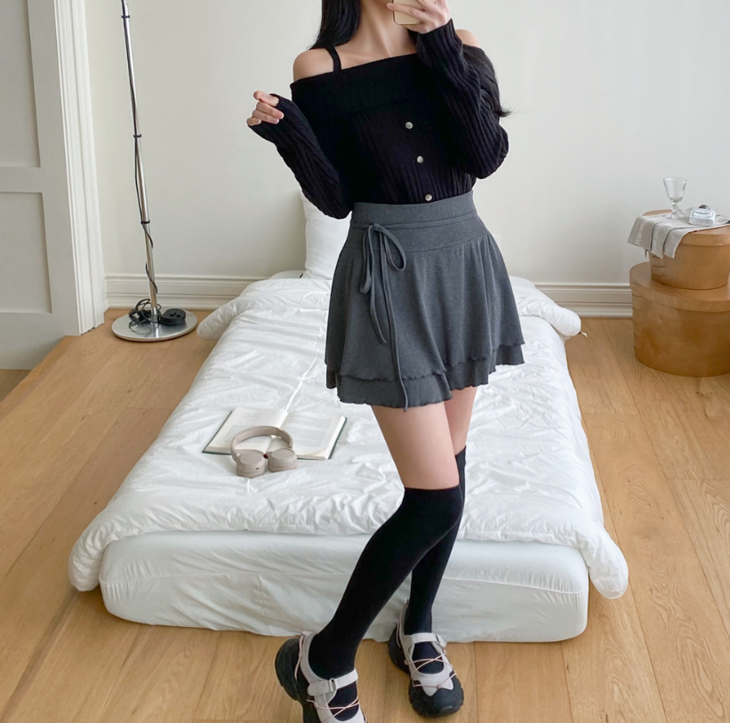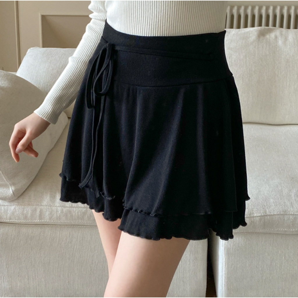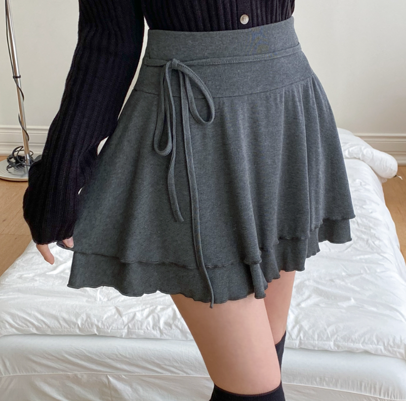 (•‾⌣‾•)溫柔感滿分既芭蕾風短裙❤️雙層荷葉邊配上腰間綁帶💕輕鬆穿出大長腿