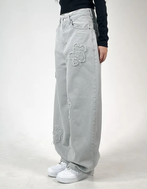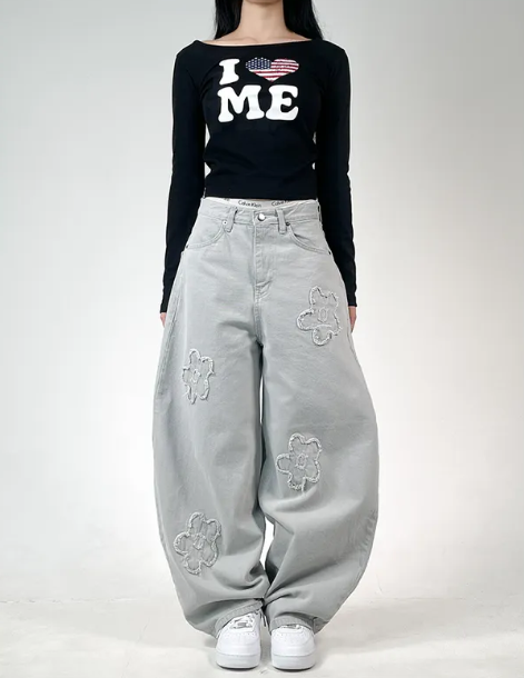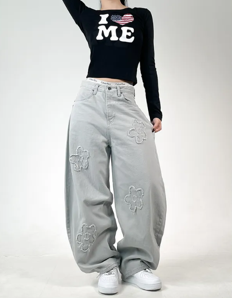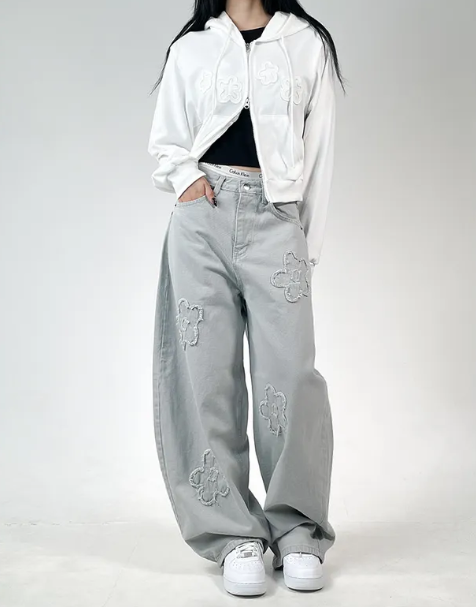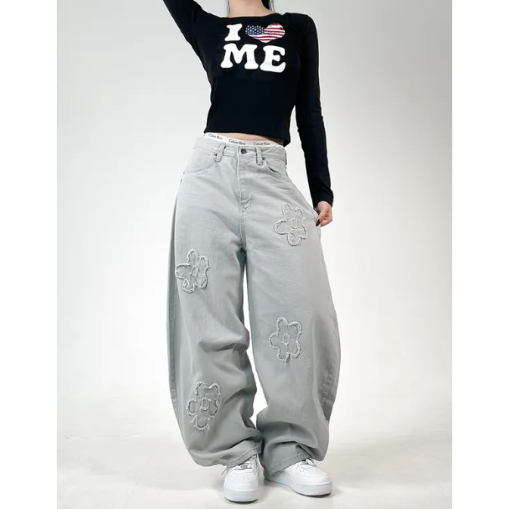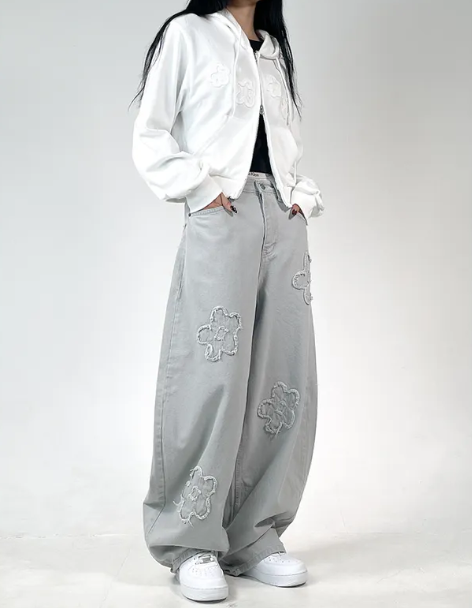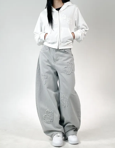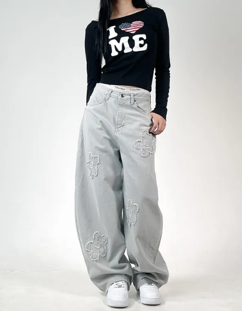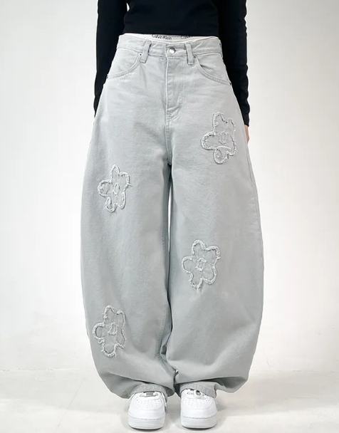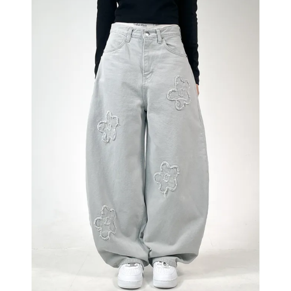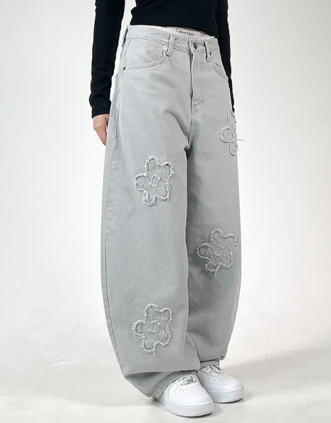 ヽ( ^ω^ ゞ )呢款立體花朵牛仔褲💕以獨特褲管剪裁完美修飾腿型❤️